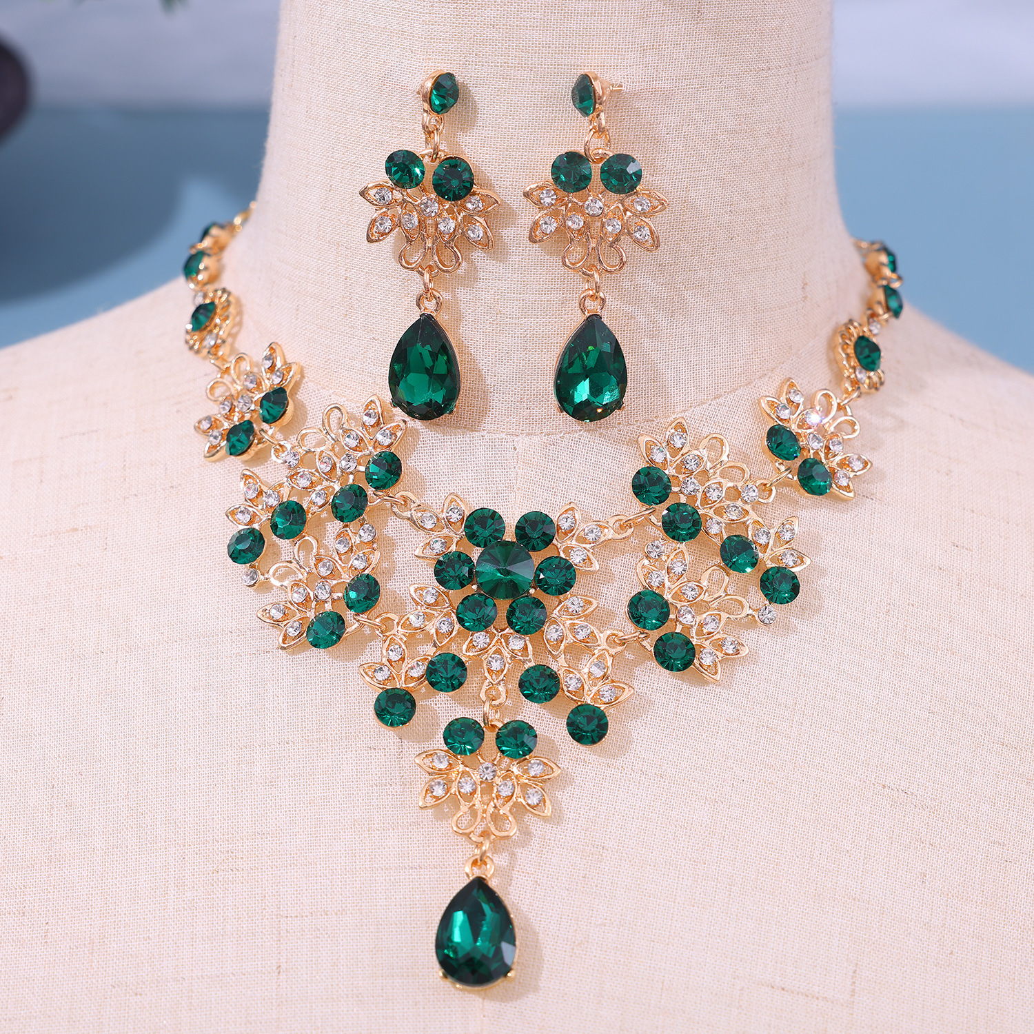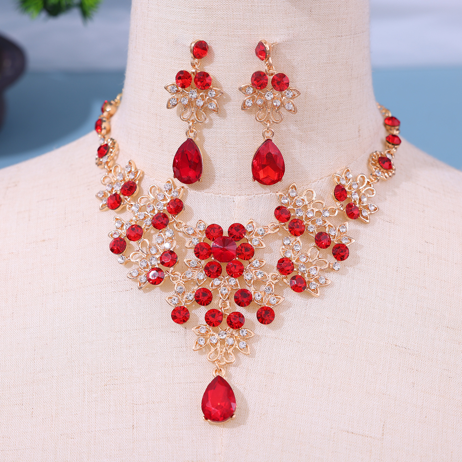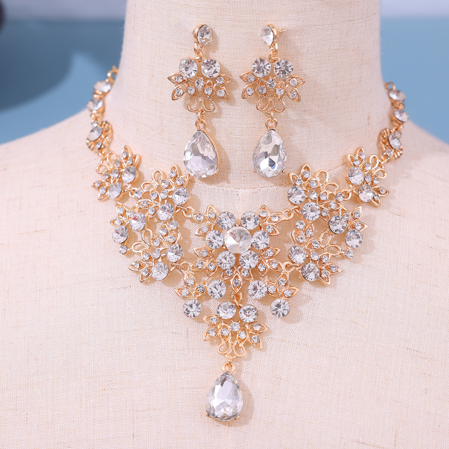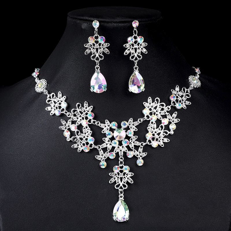 Главная страница > Европейский стиль невесты ожерелье серьги со стразами ювелирные изделия трансграничные свадебные платья укладки капли воды ожерелье аксессуары