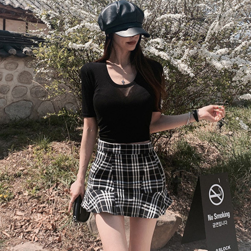 Главная страница > Южная Корея женская футболка Летняя новая супер эластичная микро перспектива черная короткая тонкая футболка