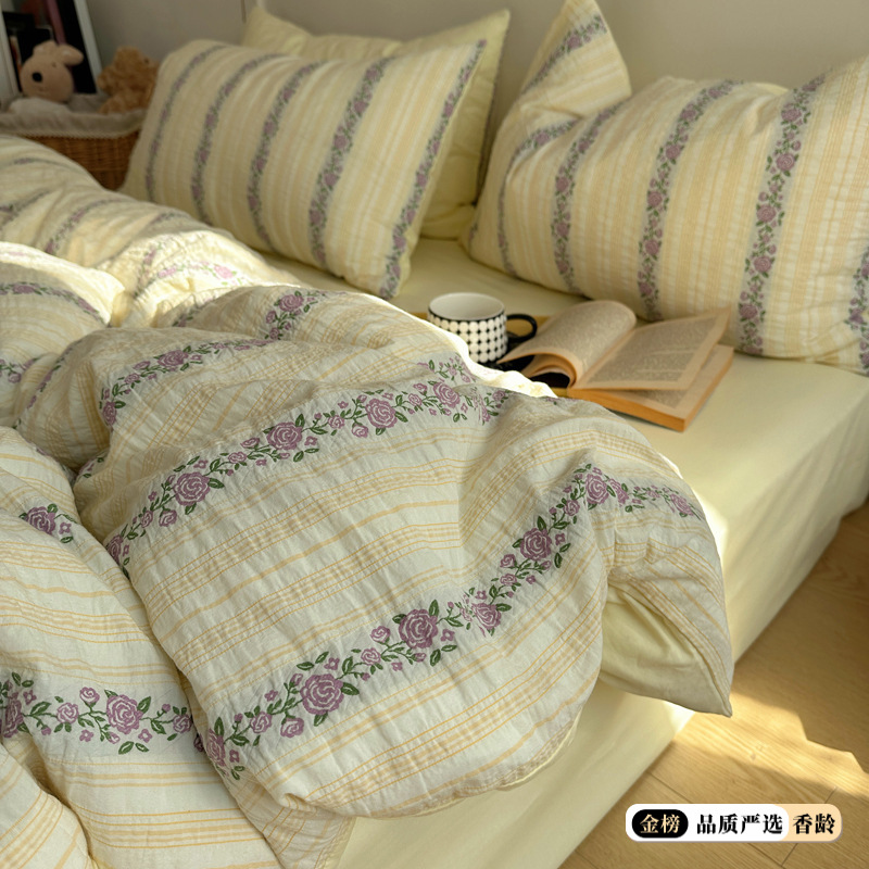 Главная страница > Корейский стиль INS, 60-е годы, чистый хлопок, жаккардовая ткань с окрашенной пряжей, комплект из четырех предметов, пасторальный цветочный дизайн, пододеяльник, простыня, пододеяльник на резинке 1,8 м.