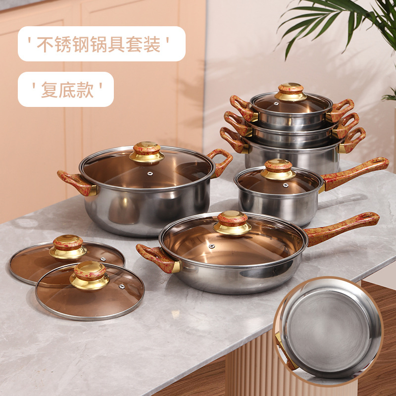 Трансграничный набор из нержавеющей стали, антипригарная сковорода, сковорода, сковорода, сковорода, сковорода, сковорода, сковорода, кухонный набор Pot set12PCS