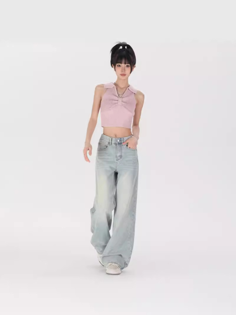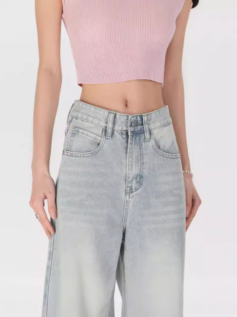 Главная страница > Ретро светлый цвет с высокой талией Тонкие прямые джинсы женские свободные широкие брюки