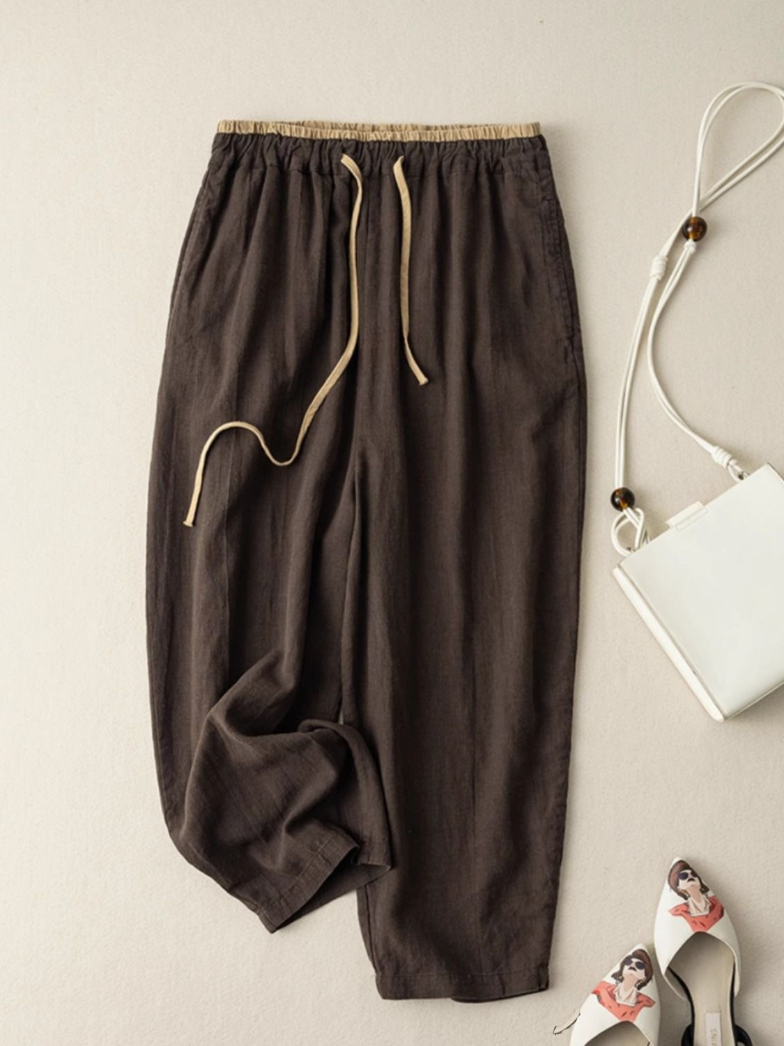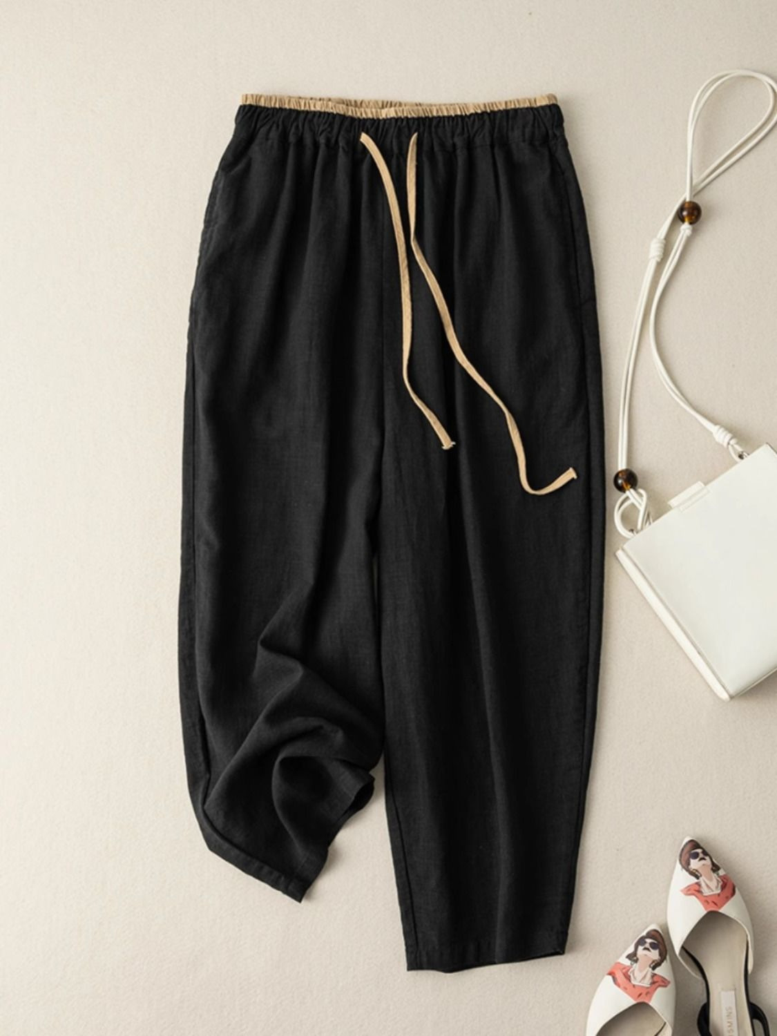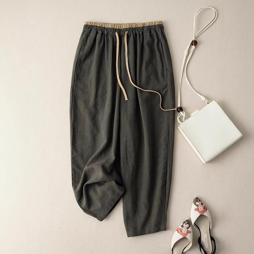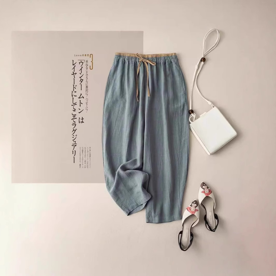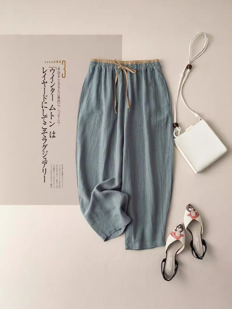 Главная страница > Европейские и американские женские шнуровки ретро пригородные женские брюки летние хлопчатобумажные брюки с широкими ногами повседневные брюки женские свободные прямые брюки тонкие