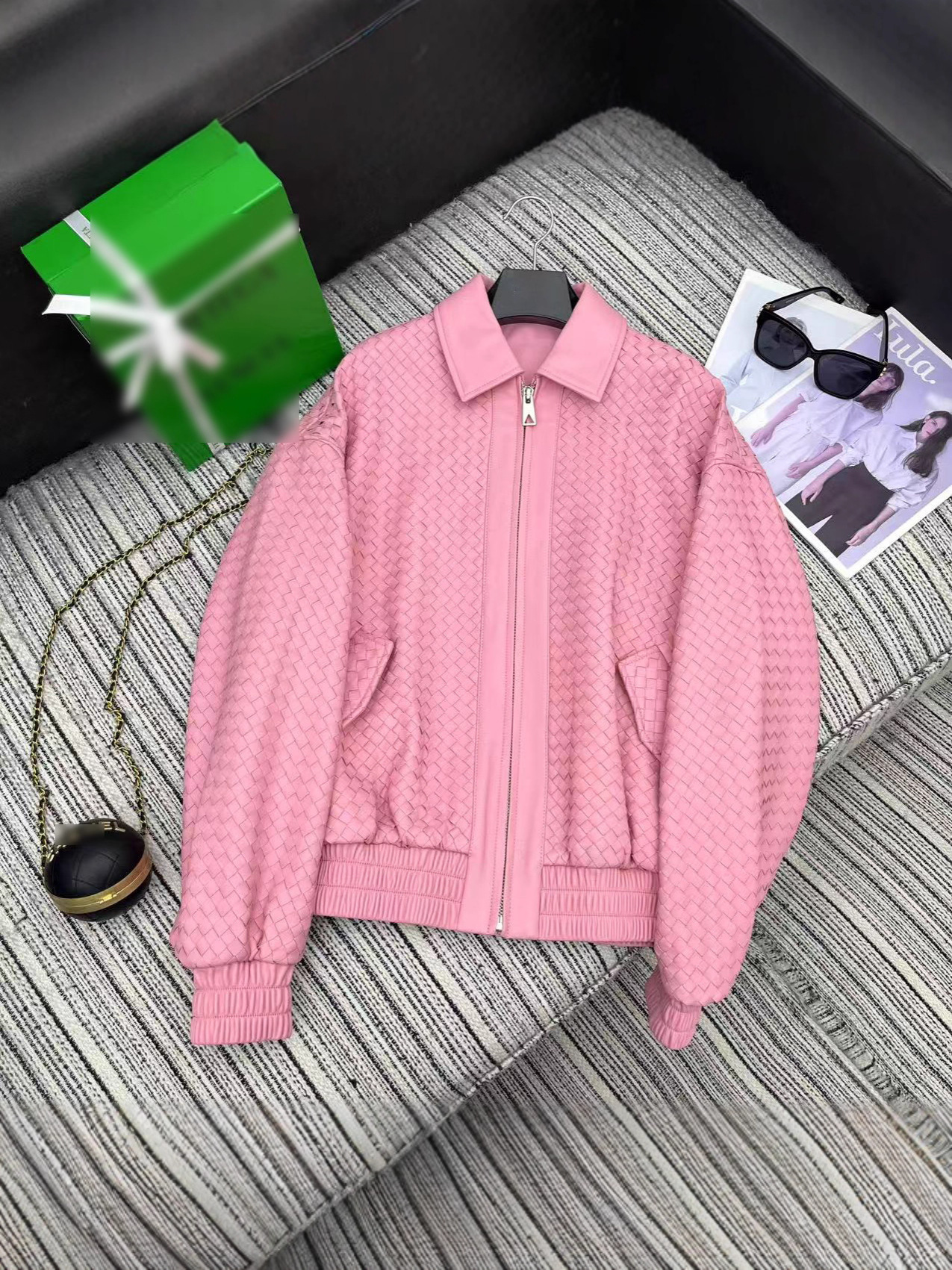 Главная страница > 南油女装2025年早秋冬BV新款小绵羊皮夹克编织翻领皮衣外套女轻奢