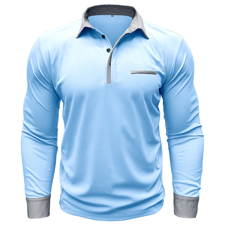 Главная страница > Мужская рубашка-поло в европейском и американском стиле с отложным воротником, с длинным рукавом, повседневная рубашка-поло для Amazon, мужская рубашка-поло в стиле «Хенри».