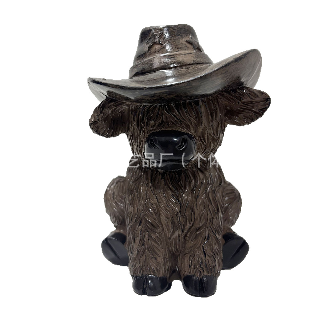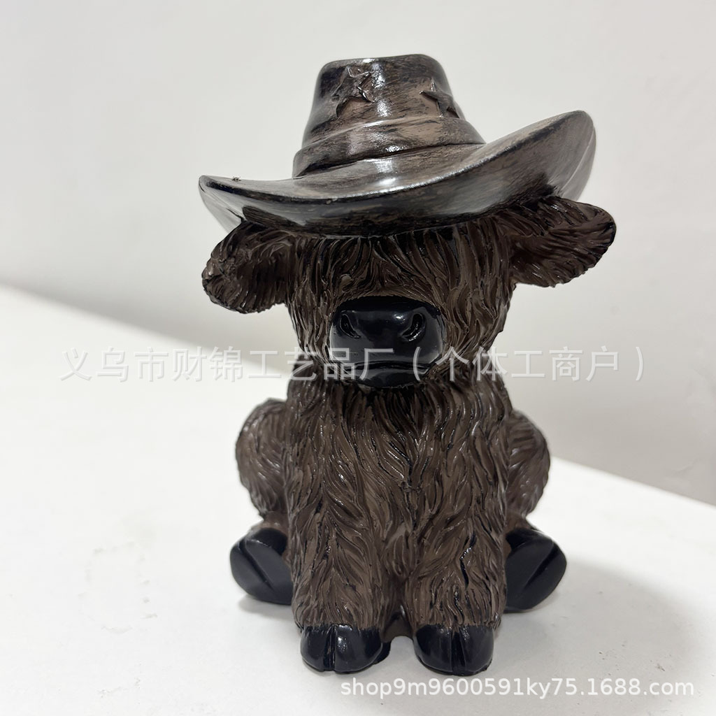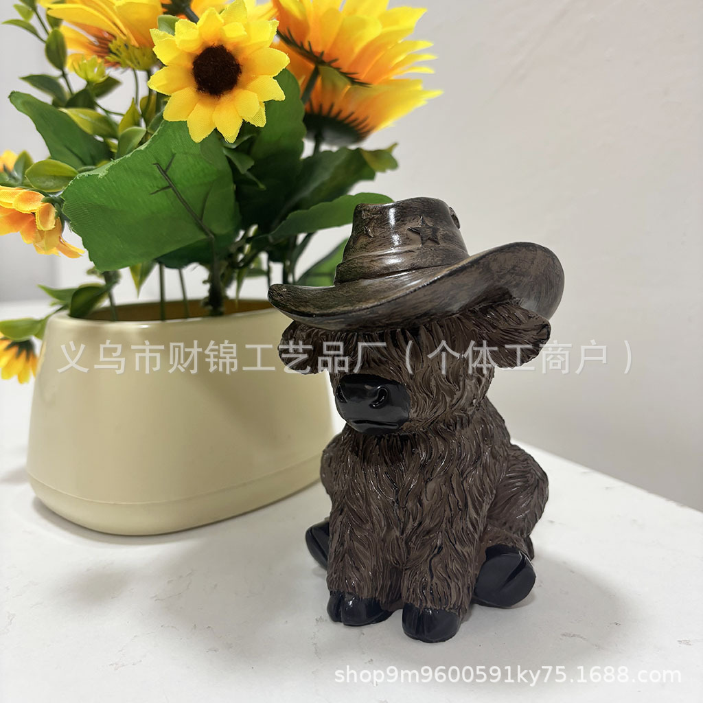 Кросс-бордерная статуэтка из смолы в виде коровы Хайленд в ковбойской шляпе, декор для деревенского дома, украшение для двора, сада или рабочего стола