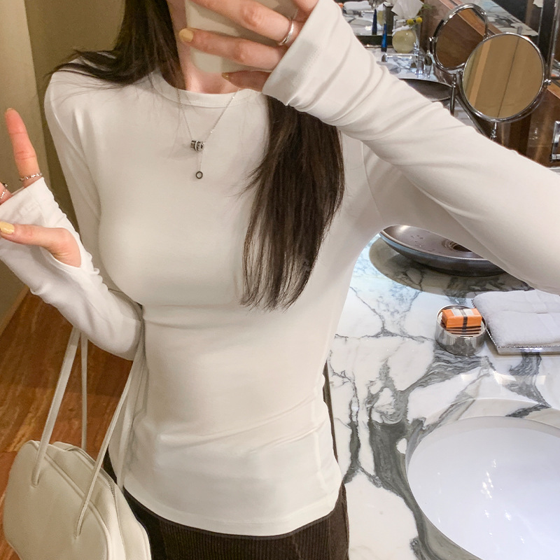 Главная страница > Тонкая рубашка с длинным рукавом с круглым вырезом