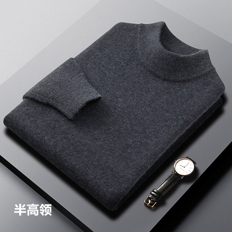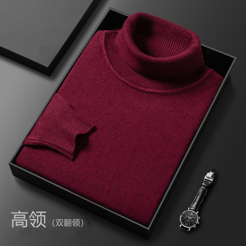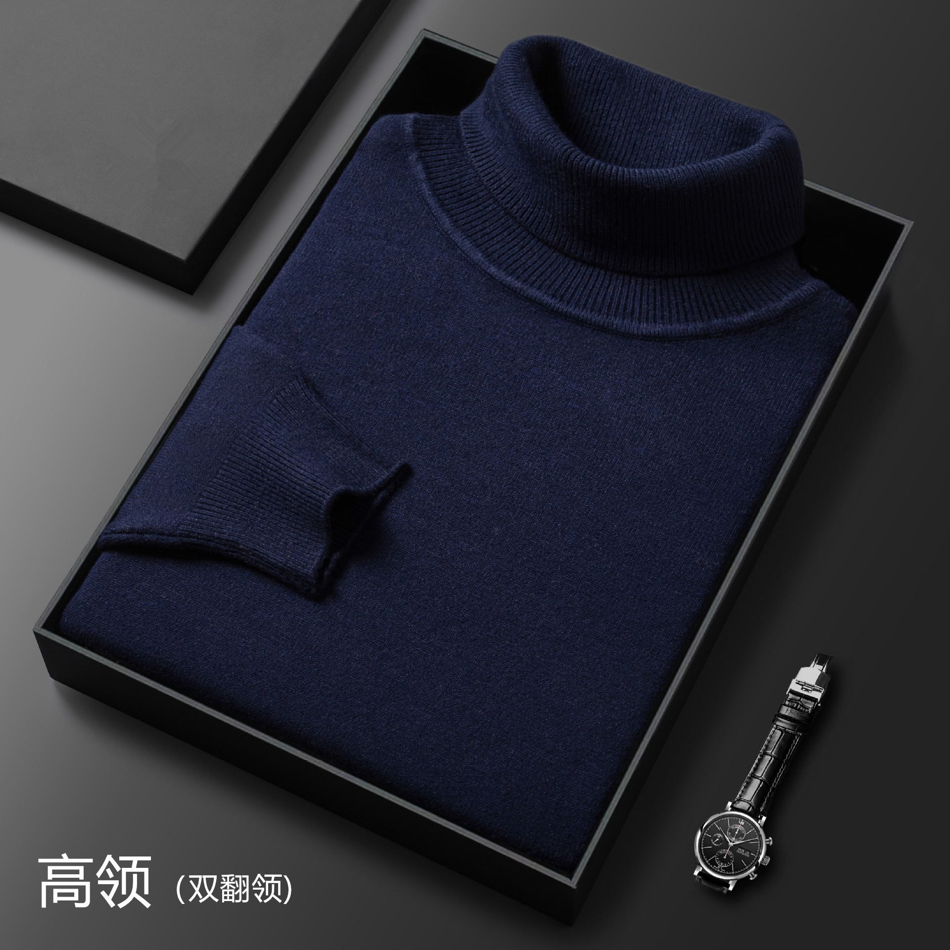 Однотонный облегающий свитер-база, модный трансграничный свитер с двойным воротником-стойкой из шерсти для мужчин, мягкий и теплый трикотаж для осени и зимы.