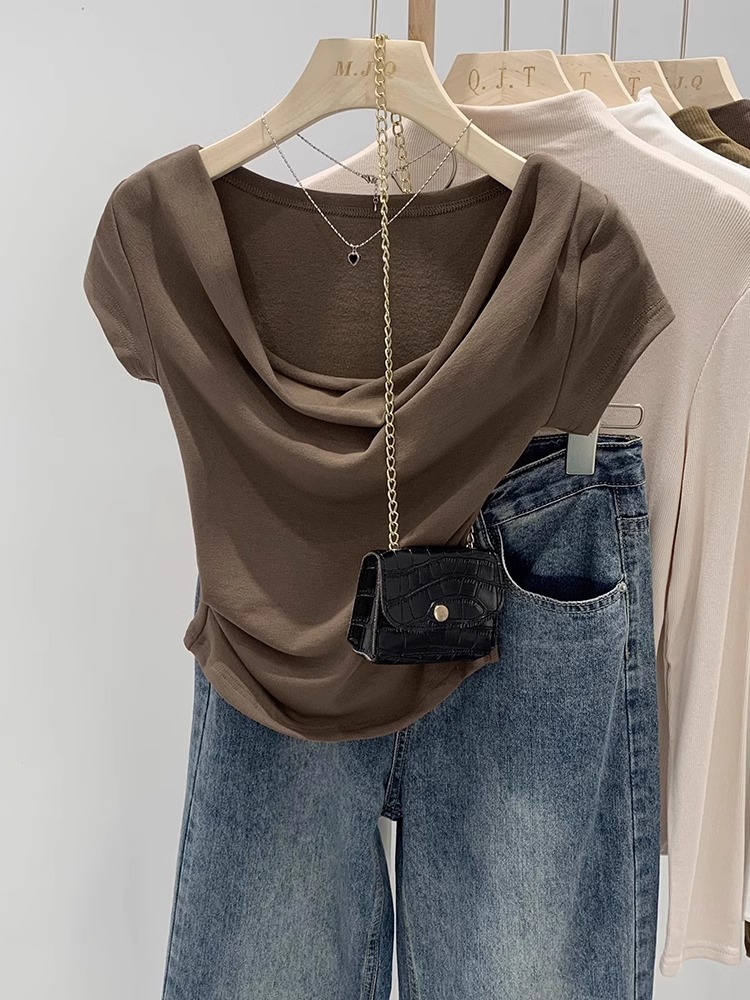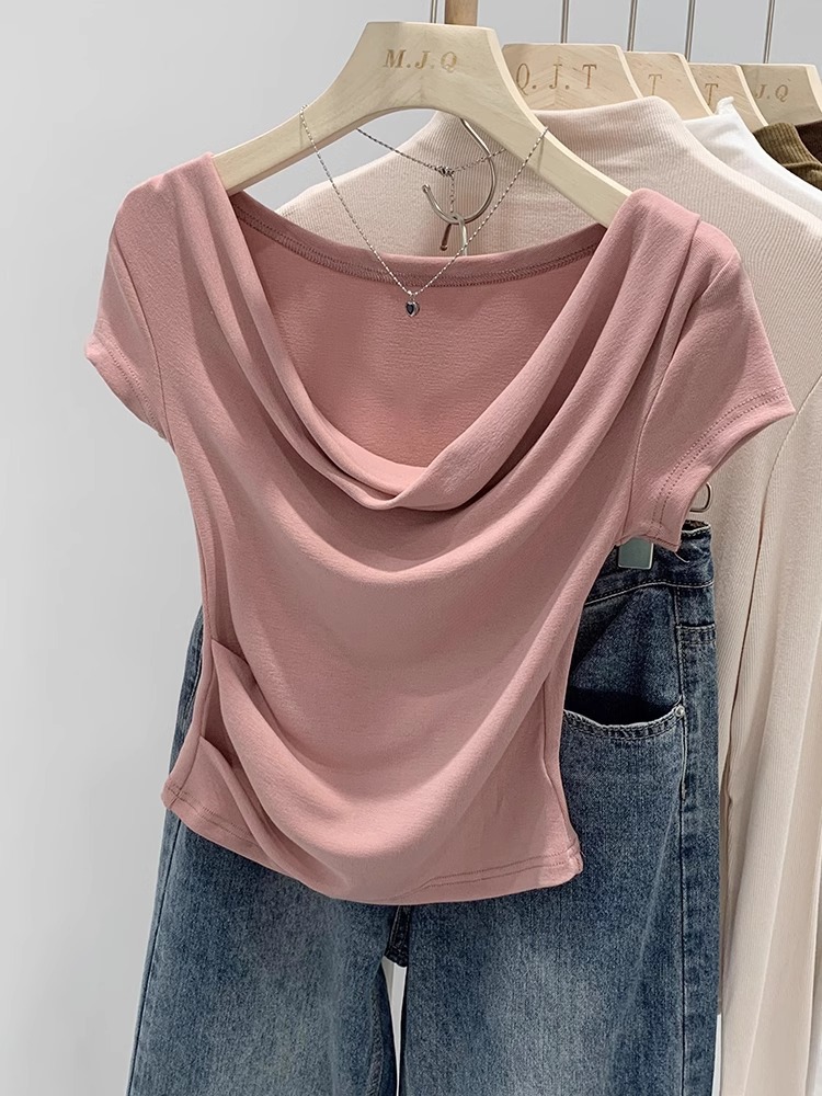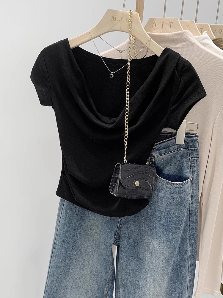 Главная страница > Ins дизайн футболка с откидным воротником и правым плечом женская с короткими рукавами летняя короткая верхняя талия сексуальная футболка чистого желания женская оптовая продажа