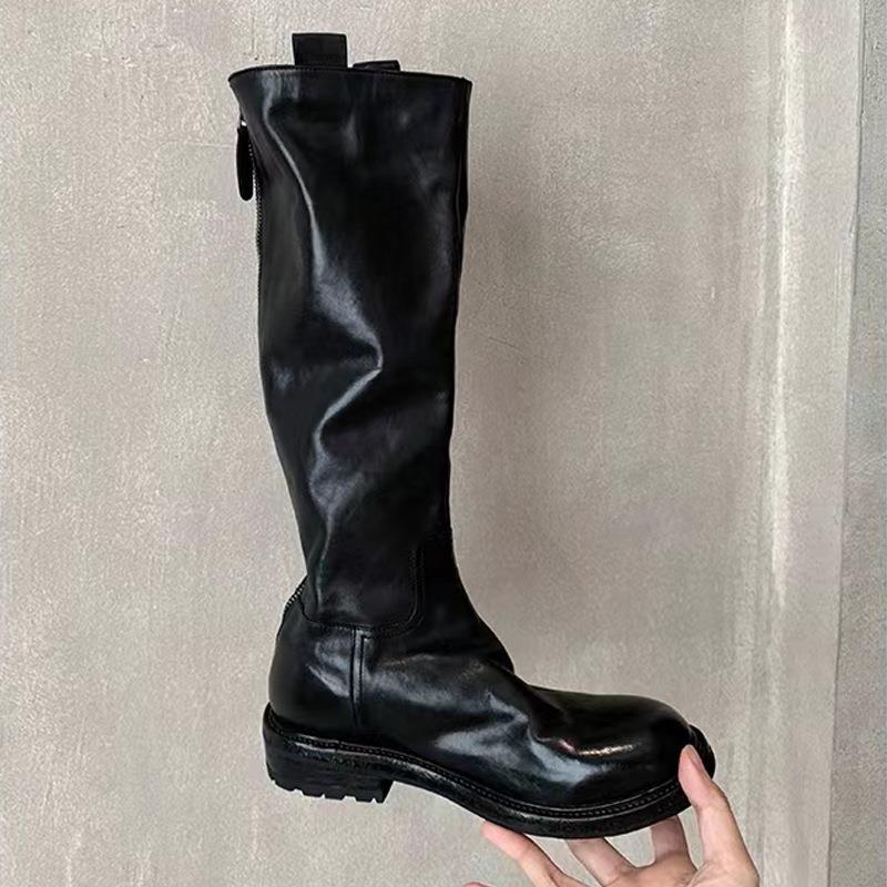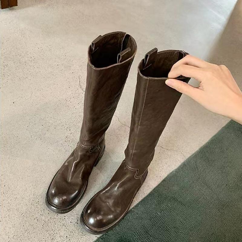 Главная страница > Новые длинные сапоги из средней плотности кожи на толстой подошве, стройнящие сапоги для верховой езды для женщин, ретро-ботинки на массивном каблуке, осень-зима, с эффектом потертости.