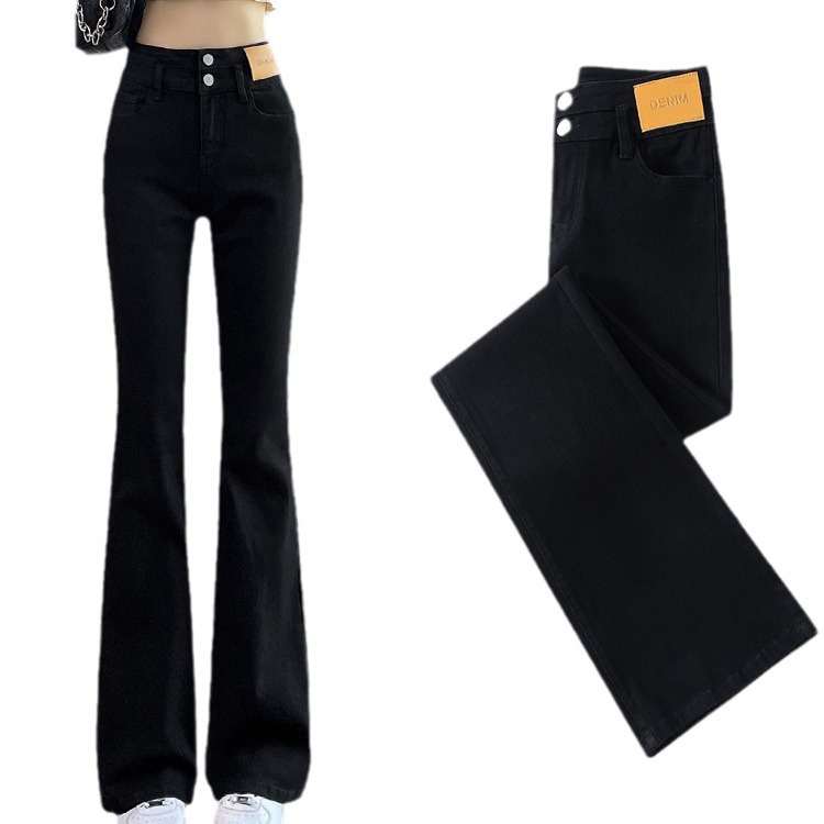 Главная страница > Черные двойные пуговицы микро-рога джинсы женский 2025 новый взрывной