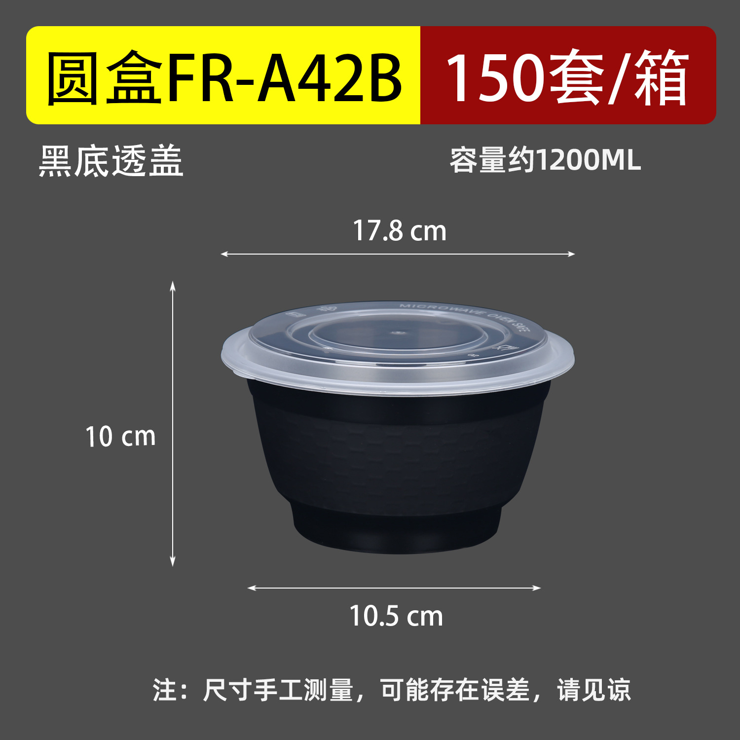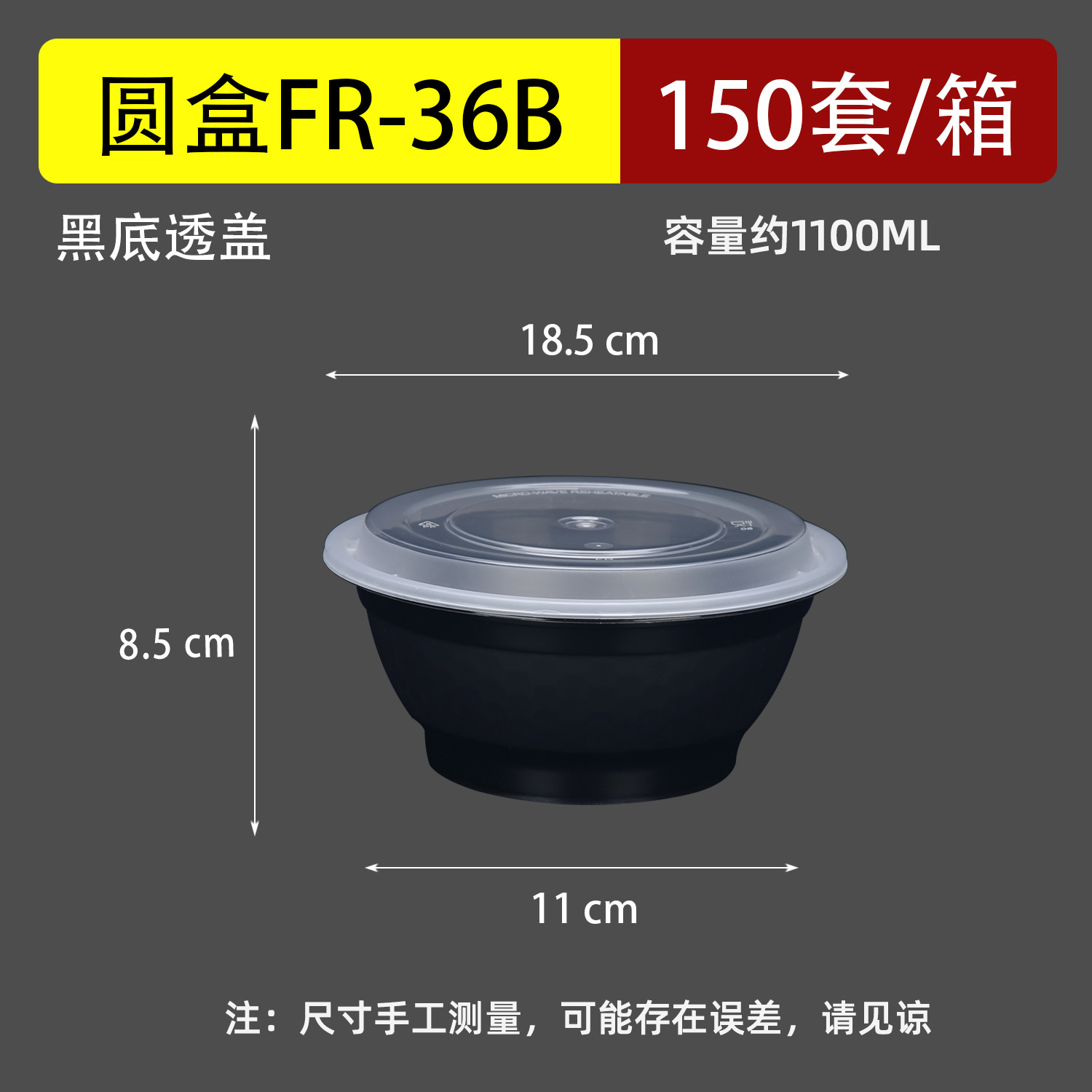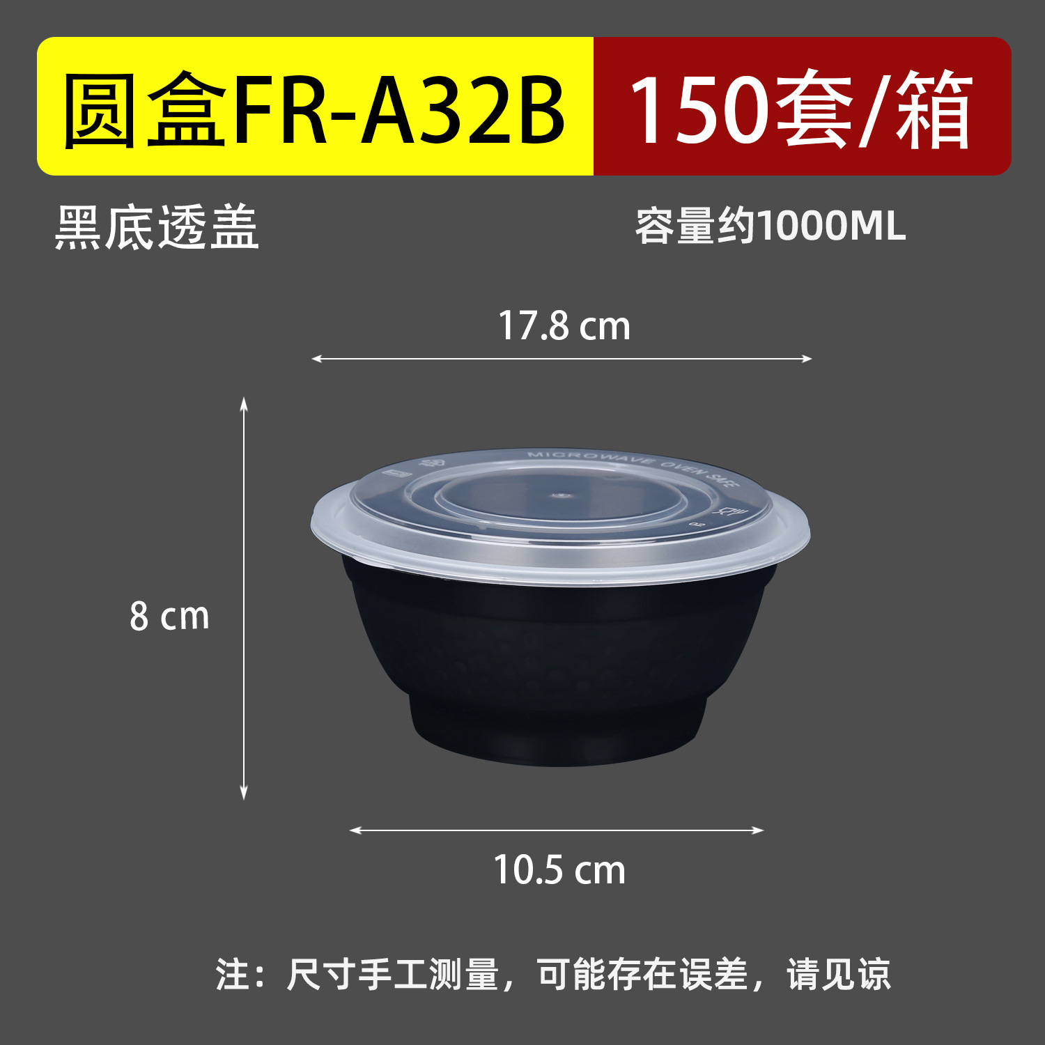 Черный 1000 круглая чаша с крышкой (300 комплектов)