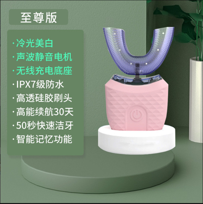 Главная страница > U-образная электрическая зубная щетка для взрослых, полностью автоматический водонепроницаемый звуковой очиститель зубов с таймером, силиконовая зубная щетка для чистки полости рта с мягкой щетиной