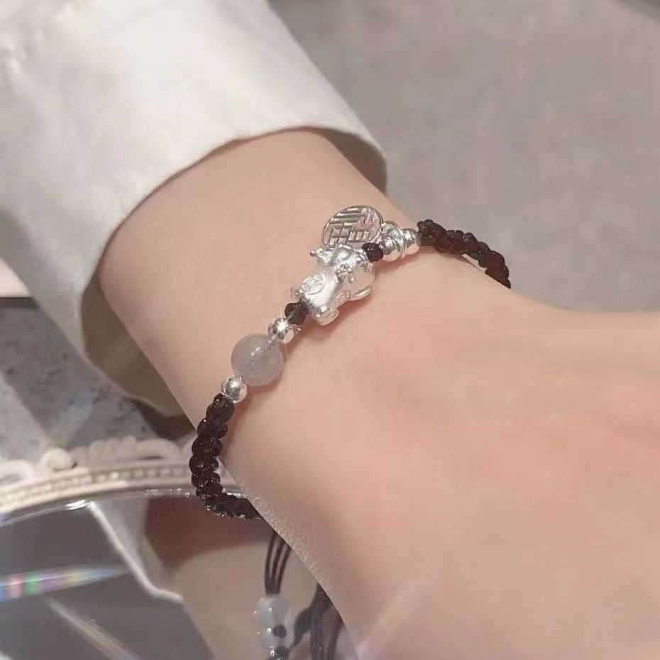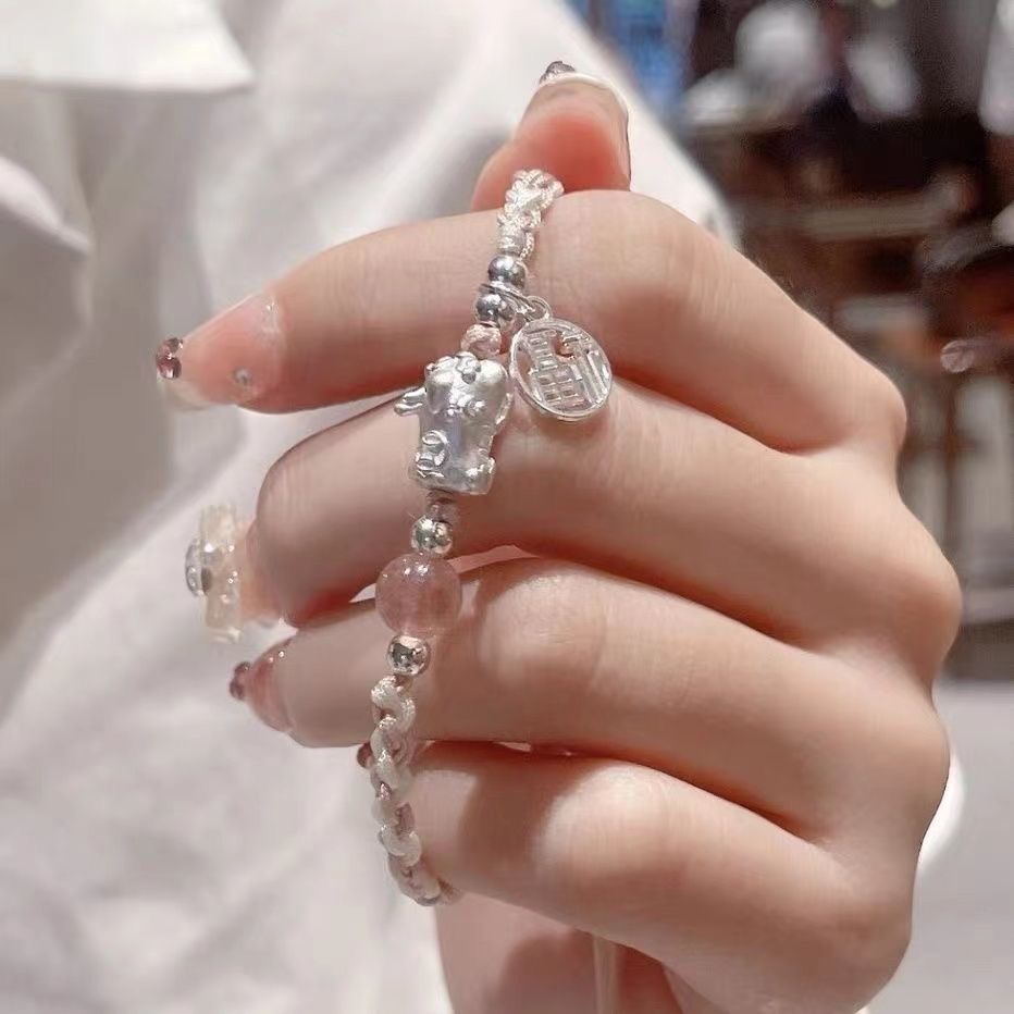s139 серебряный плетеный браслет Пиксиу [розовый]