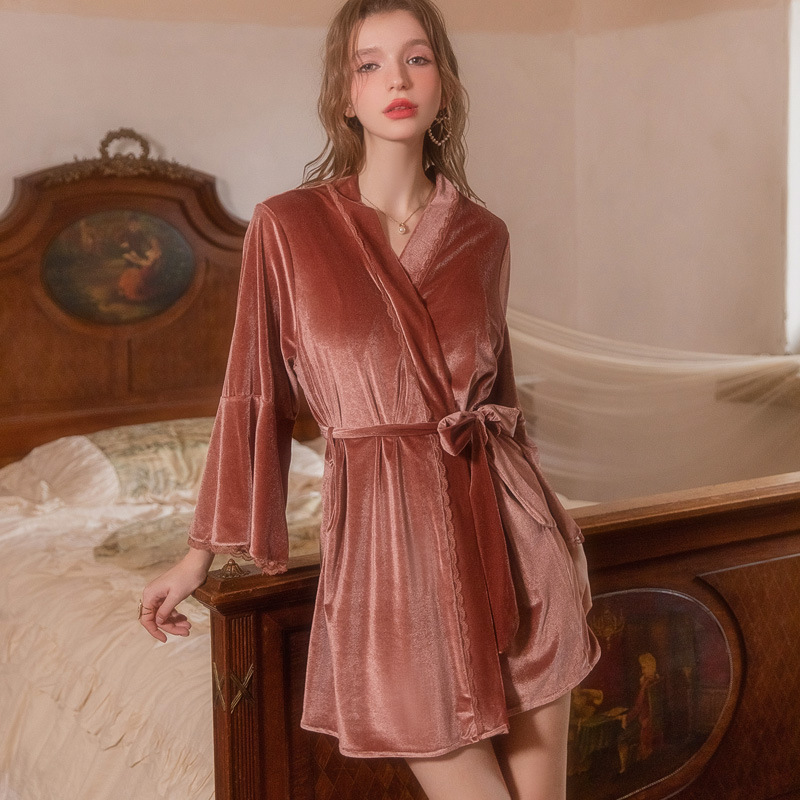 Главная страница > Женская золотая бархатная минималистская ночная юбка халат с сексуальным вкусом пижама плюс размер халат секс 12321
