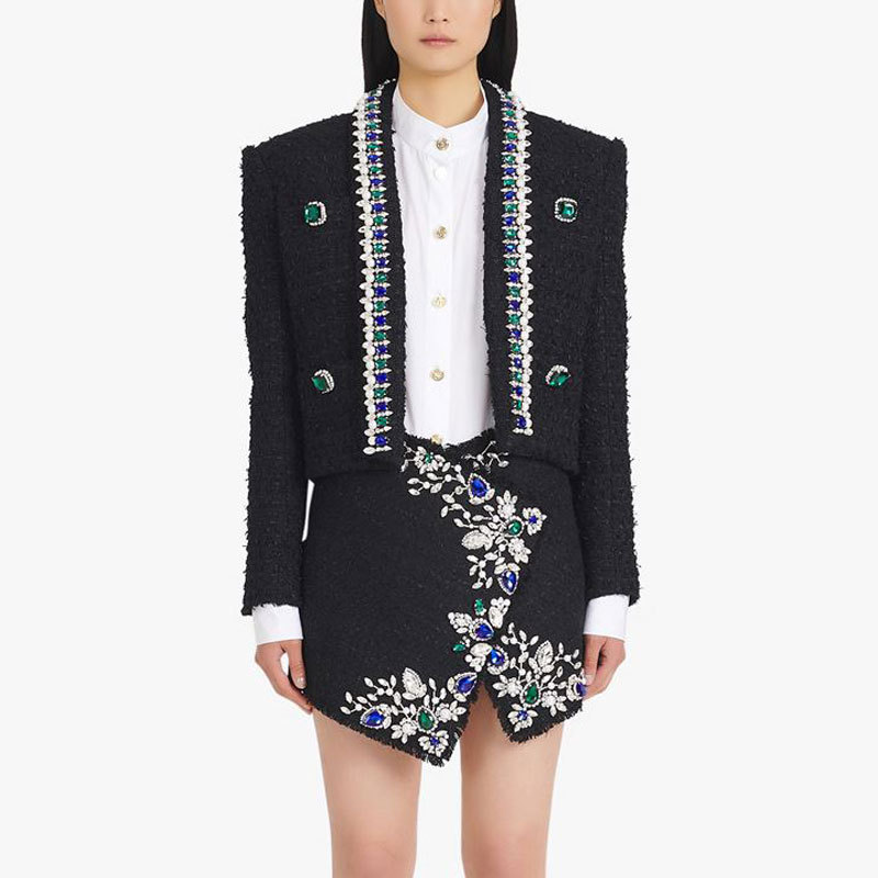 Главная страница > В наличии 2025 европейская и американская модная новая прочная короткая шерстяная куртка с воротником из зеленых фруктов и стразами для женщин