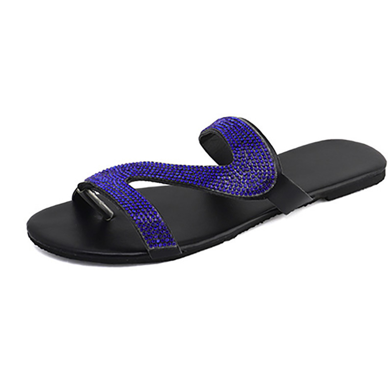 Главная страница > Женские тапочки Amazon больших размеров, европейские и американские модные сандалии со стразами, удобные Верхняя одежда больших размеров, сандалии на плоской подошве