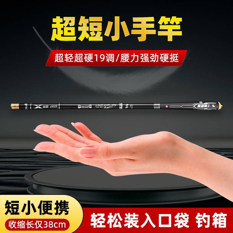 Ультра короткий углерод 6h Мини маленькая ручная Удочка оптом 19 Регулируемая легкая сверхтвердая термоусадочная 38 см карманная короткая ручная удочка