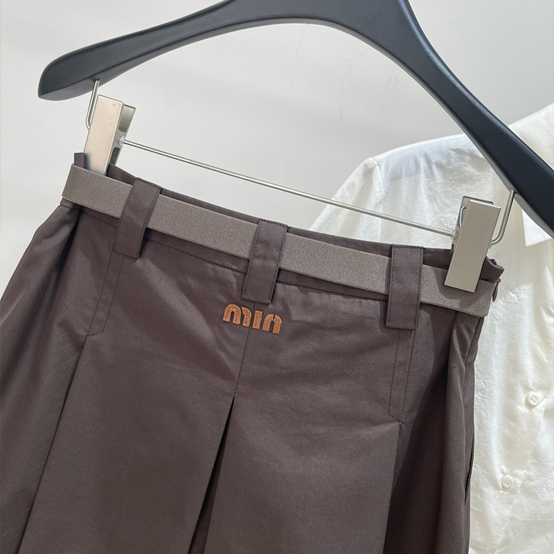 2025 Весна-Лето Кожаная куртка с молнией в цвете какао-коричневый, пояс с буквами, плиссированная юбка, свободные топы для мужчин и женщин
