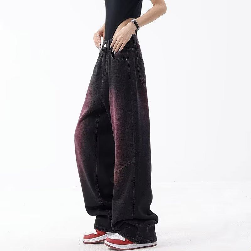 Главная страница > Винтажные женские джинсы с эффектом граффити, прямые свободные повседневные длинные брюки с широкими штанинами больших размеров и дизайном для девочек