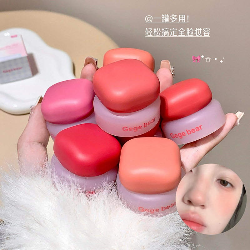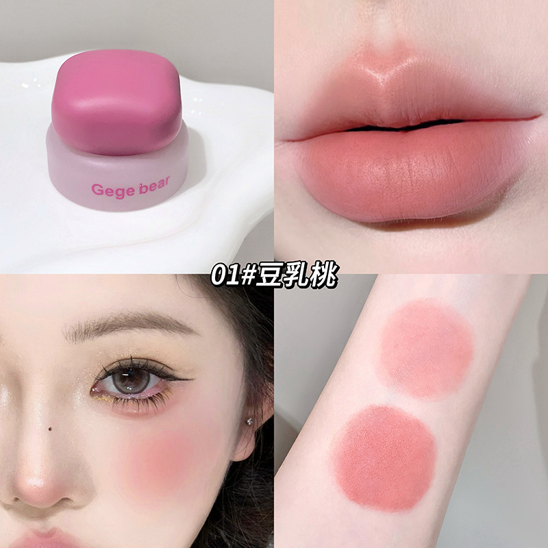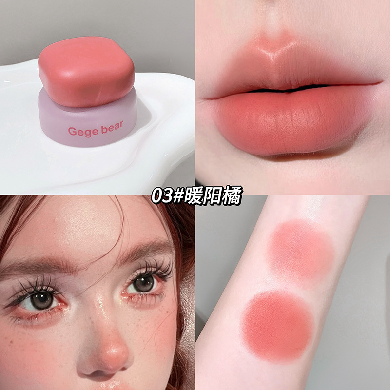 Gege Bear Mousse для губ и щек двойного назначения, матовая матовая отбеливающая несохнущая корейская кремовая румянец