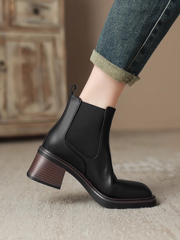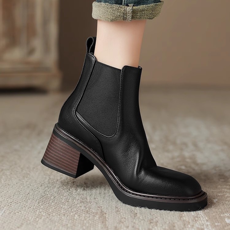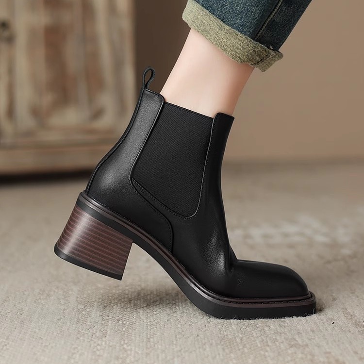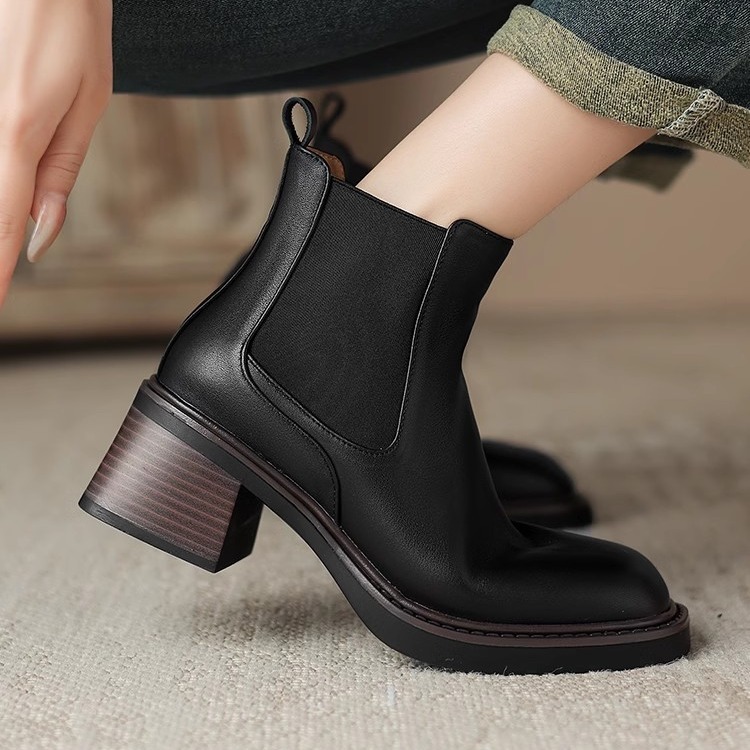 Главная страница > Женские Ботинки Челси на массивном каблуке в британском стиле с квадратным носком, новые весенние ботильоны на толстой подошве 2024 года, черные универсальные Ботинки Martin