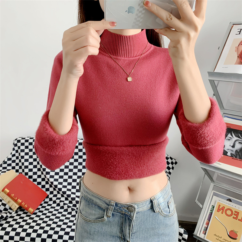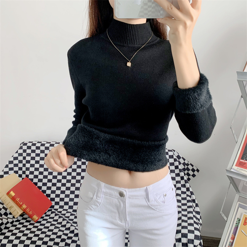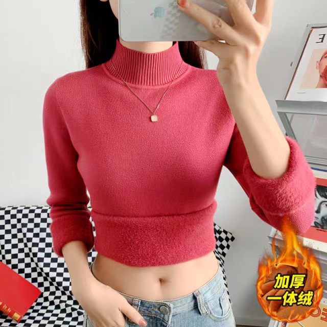 Главная страница > Цельный осенне-зимний утолщенный цельный бархатный плюс бархатный свитер для женщин, зимняя полугольфовая рубашка с норковым бархатным низом, модная