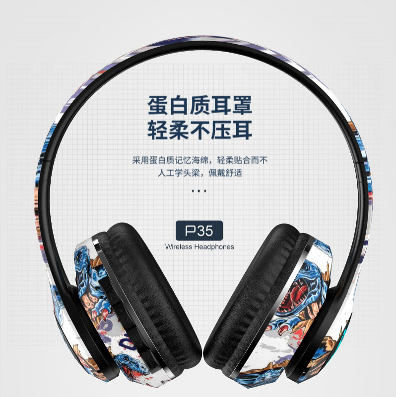 Главная страница > Трансграничная P35 головная Bluetooth-гарнитура беспроводная гарнитура национальный прилив граффити новый светящийся стерео музыкальный спорт