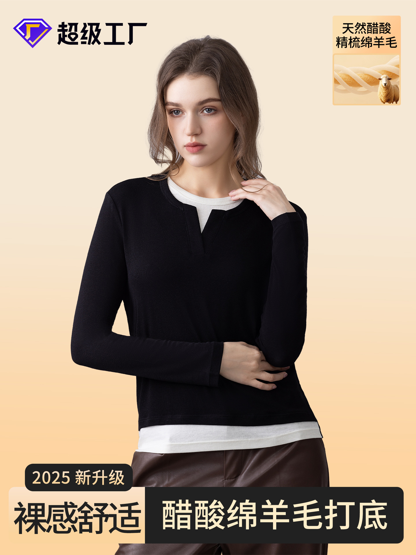 Главная страница > Женский трикотажный топ-боди из ацетатной шерсти на осень-зиму, с круглым вырезом, в стиле колор-блок, имитация двухслойного кроя