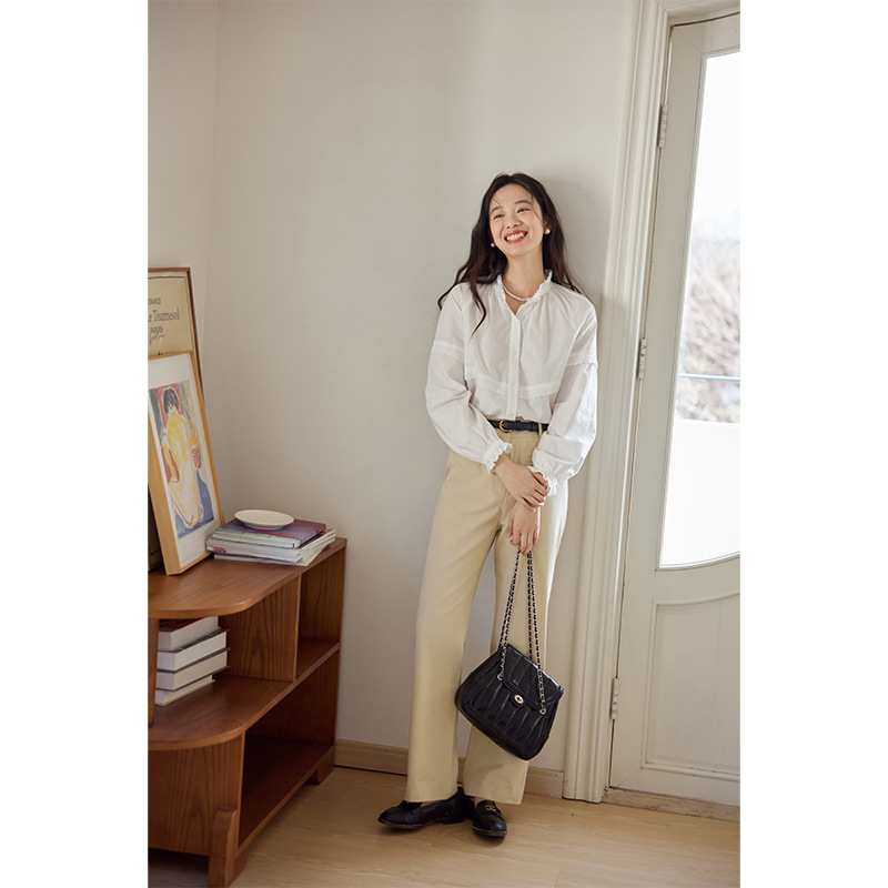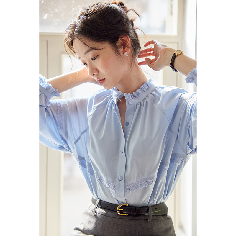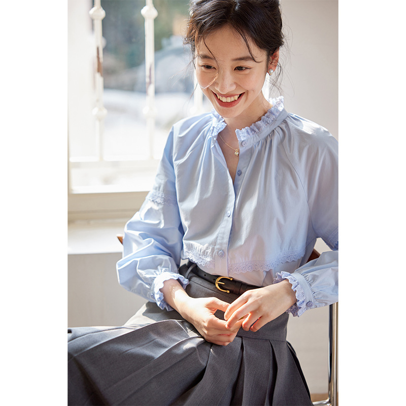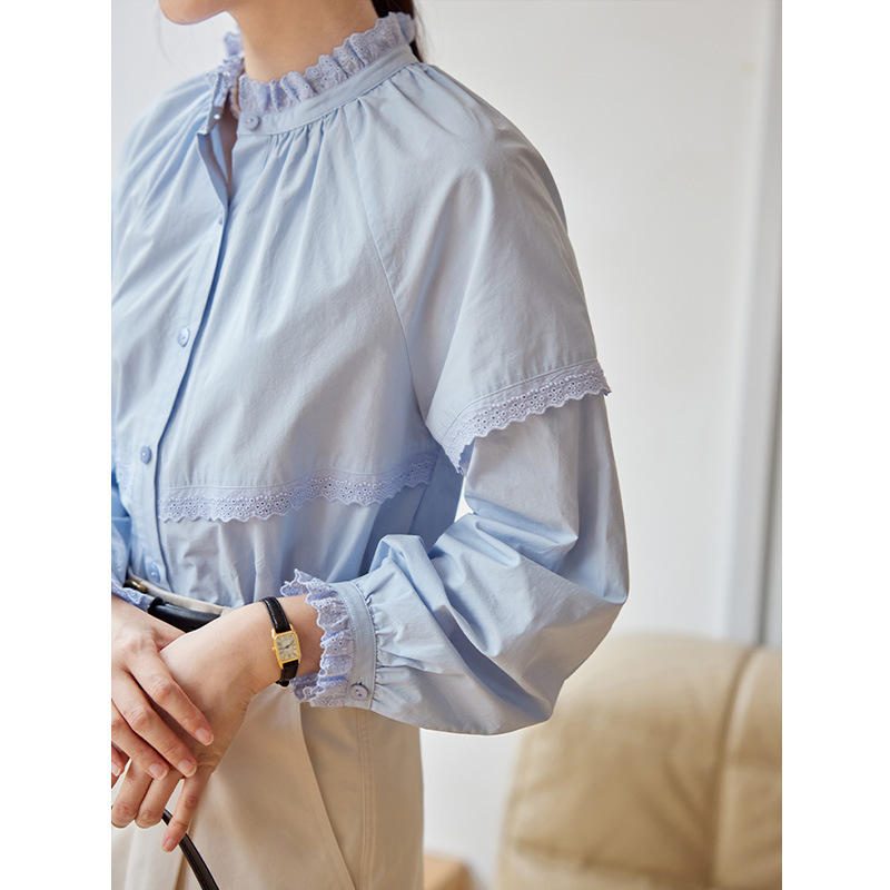 Главная страница > Moriirose белый/синий вертикальный воротник кружева рубашка женская осень французский длинный рукав свободный темперамент топ