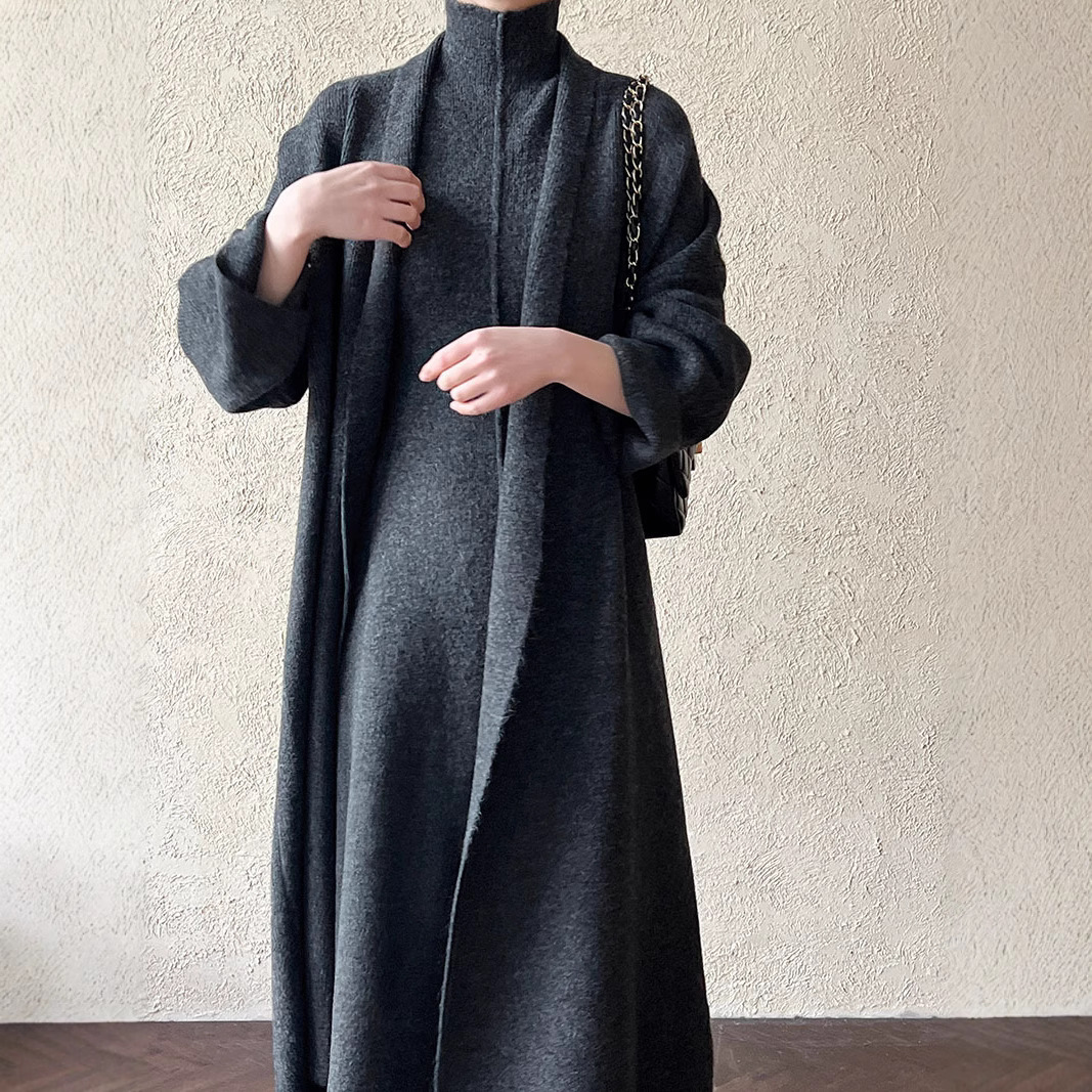 Главная страница > Женский костюм-двойка: длинный вязаный кардиган в стиле «ленивый экспорт», осенне-зимняя новинка, с высоким воротом
