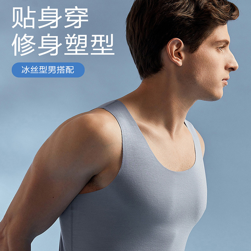 Главная страница > Мужской белый жилет с ледяным шелком без следов, мягкий и эластичный, облегающий нижнюю одежду