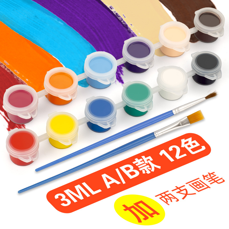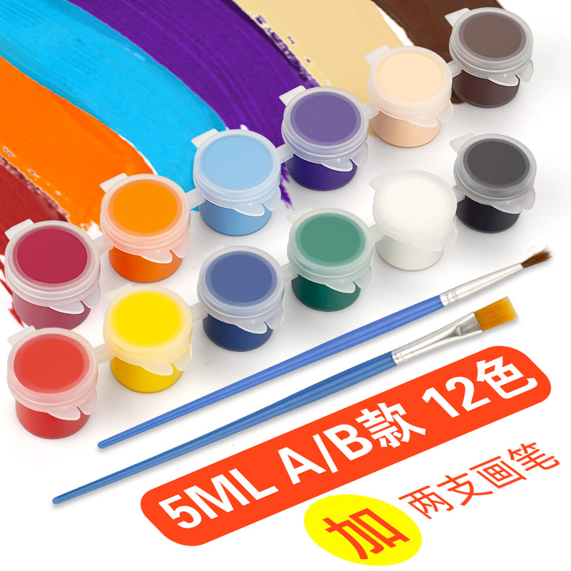 Детский акриловый пигмент 12 цветовой набор 6 слитных студенческих рисунков Окрашенная DIY гипсовая кукла пигментная полоска оптом