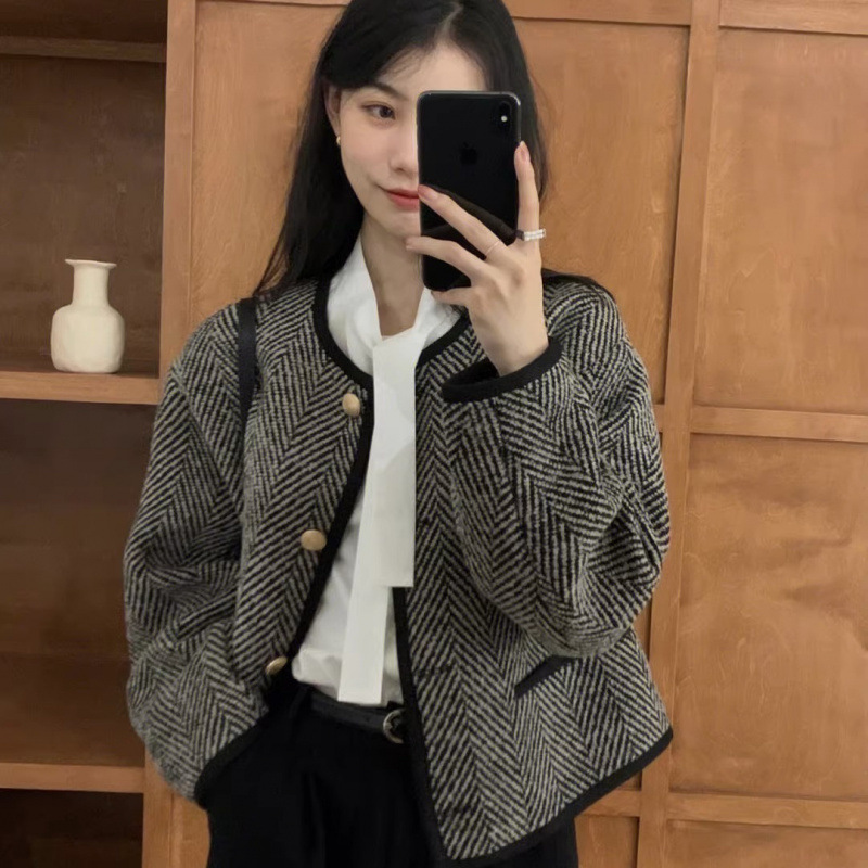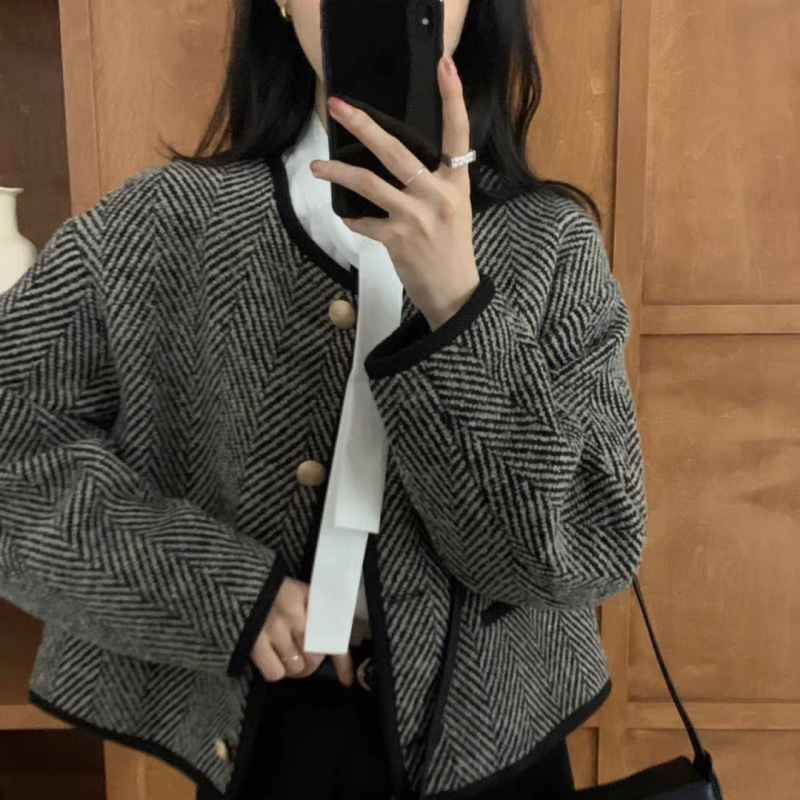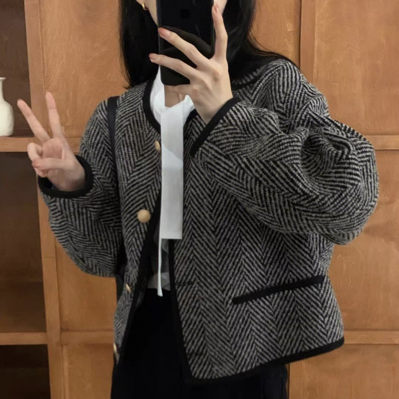 Главная страница > Французское ретро маленькое ароматное пальто женское весеннее и осеннее чувство vintage Короткая куртка кардиган топ осень и зима