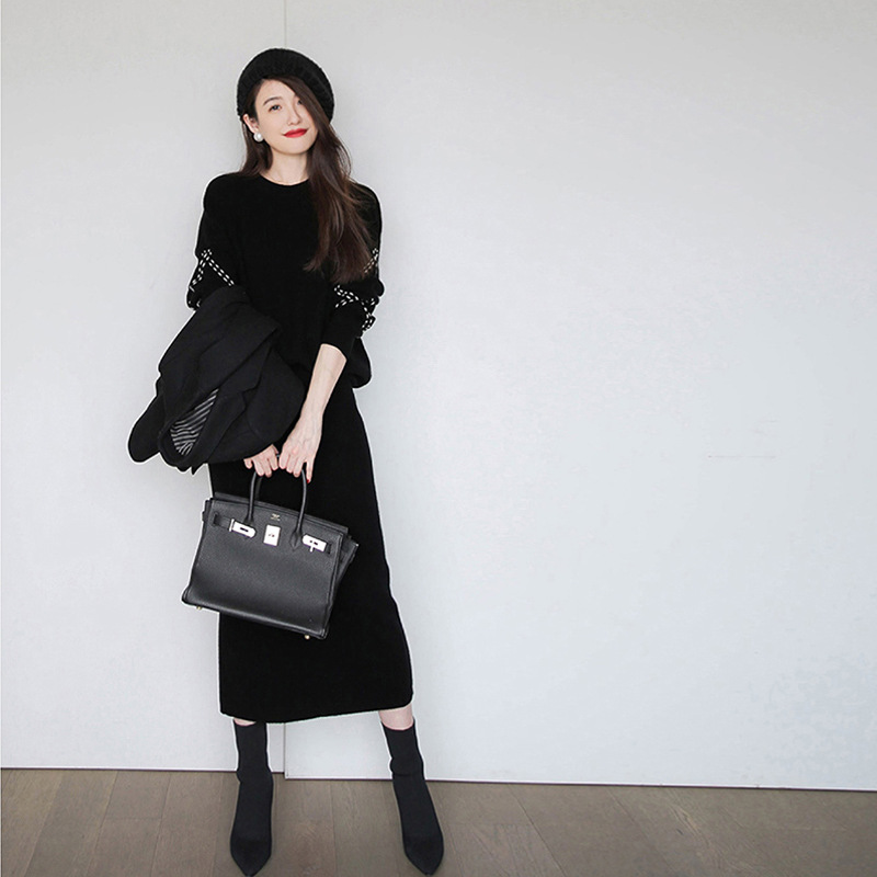 Главная страница > Изысканный вязаный костюм в стиле Chanel, новинка зимы 2025: модный комплект из топа и юбки-свитера для светских мероприятий