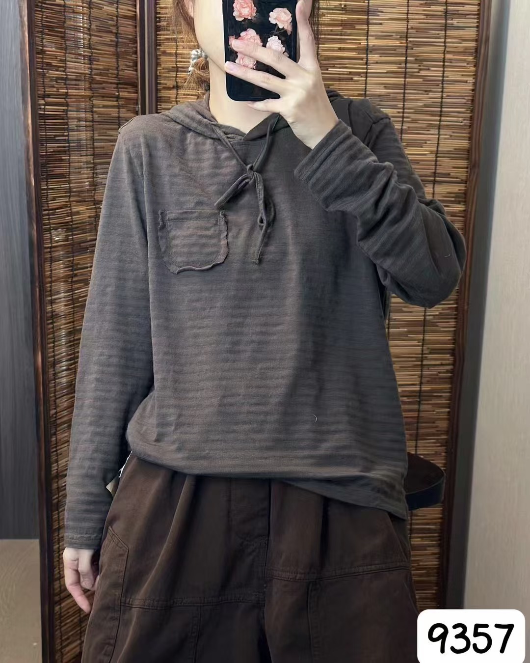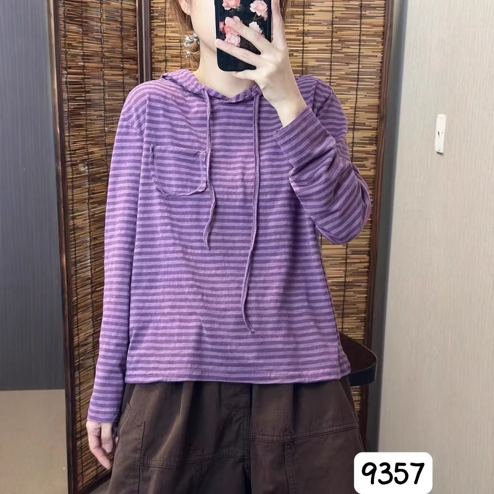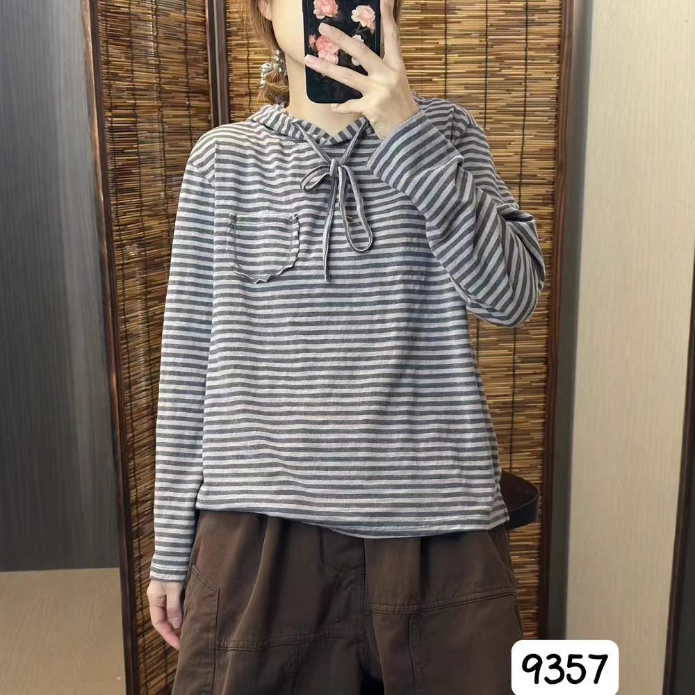 Главная страница > 2025 Весенняя капюшона с шапкой, дамы литературные фанаты с длинными рукавами в полоску, свободная хлопчатобумажная рубашка, толстовка с капюшоном