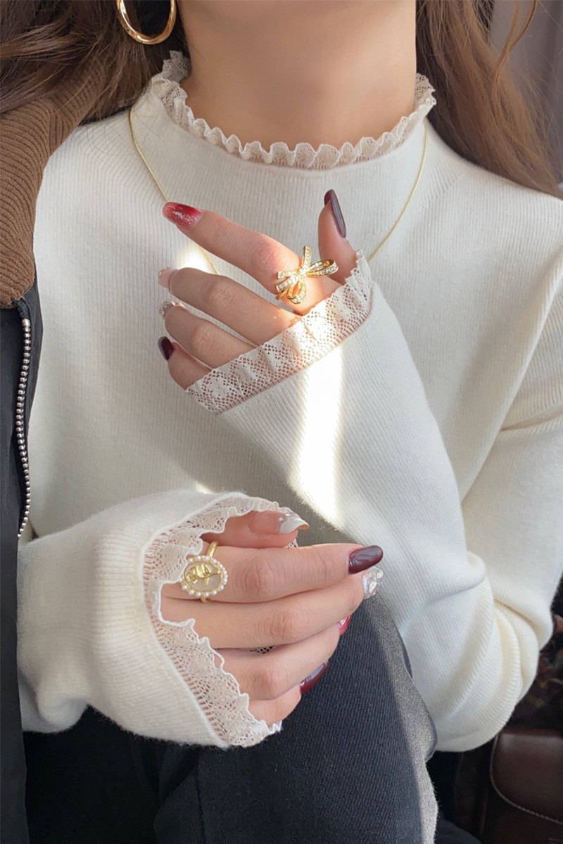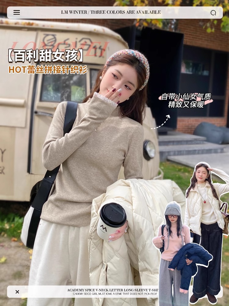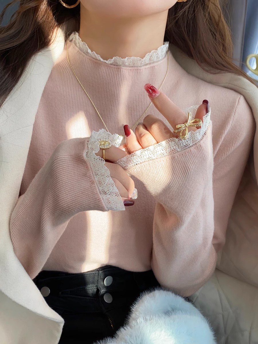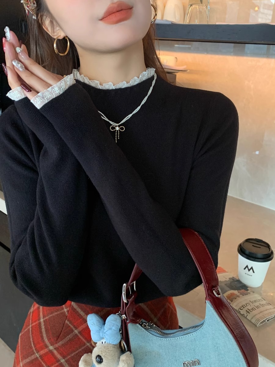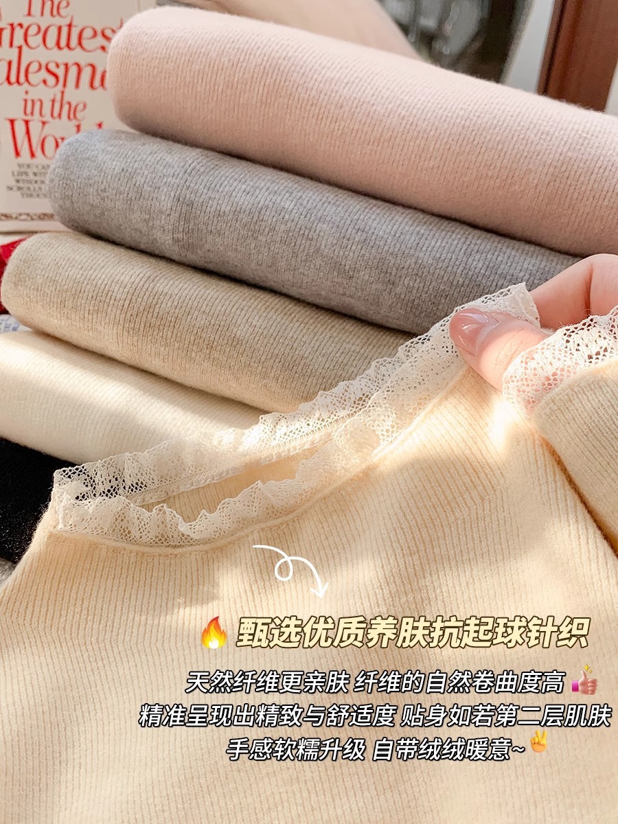 Главная страница > Женская кружевная трикотажная рубашка, осенне-зимняя внутренняя одежда, новый стиль 2025 года, уникальный и шикарный топ, свитер с полугольфом для женщин.