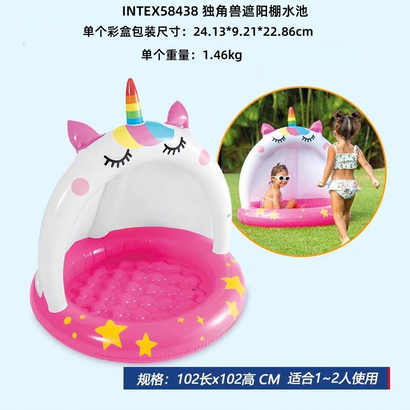 58438 Надувной бассейн с навесом в виде единорога и пузырьковым дном (1,6 кг)