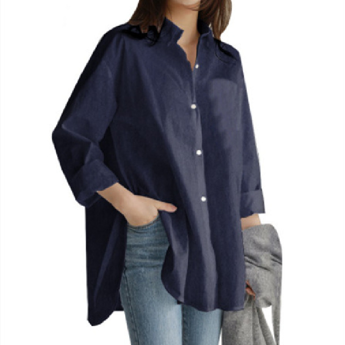 Главная страница > Трансграничная Amazon AliExpress осенне-зимняя Внешняя торговля новая Европейская и американская однотонная блузка с длинными рукавами и лацканами неправильной формы больших размеров