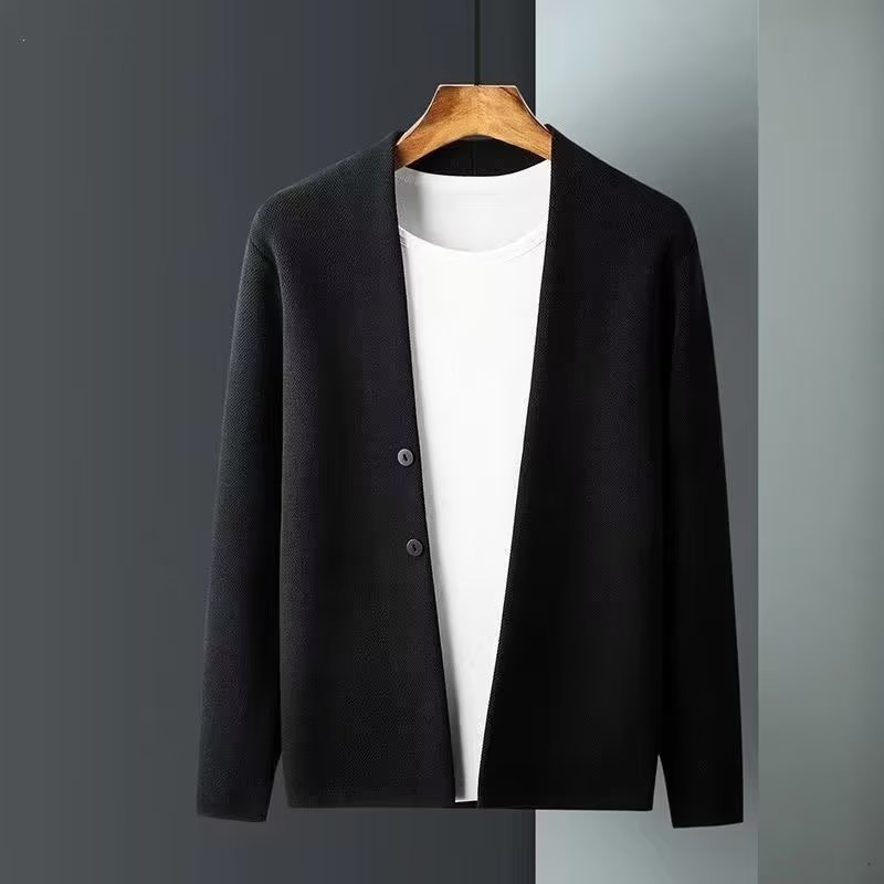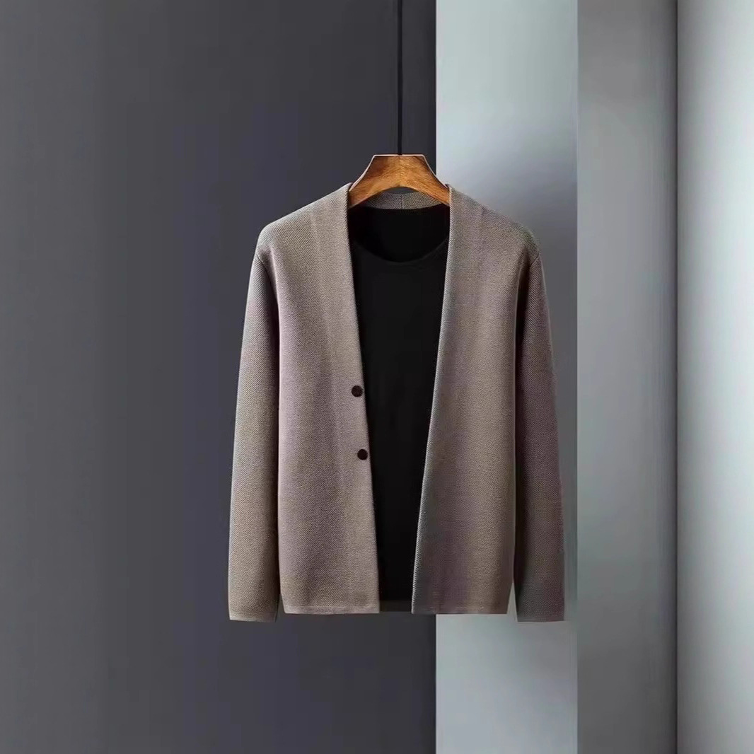 Главная страница > Весенний и осенний деловой мужской вязаный свитер модный тренд повседневный дикий кардиган корейская версия красивый кожаный свитер с V-образным вырезом