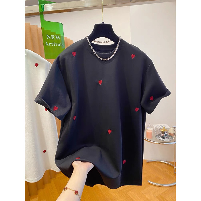 Главная страница > Трансграничный большой размер 300 кг любящая вышивка футболка с короткими рукавами 2025 новый хлопковый топ