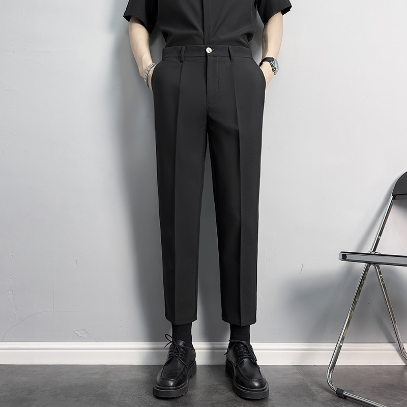 Главная страница > Стройные прямые костюмы против морщин брюки мужские бесплатные деловые повседневные брюки премиум-класса вертикальные черные брюки с девятью баллами