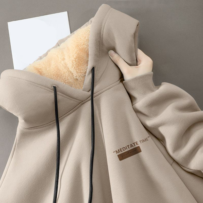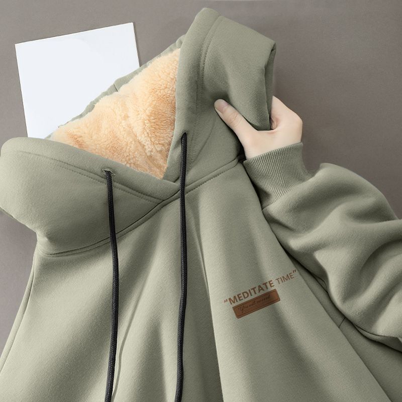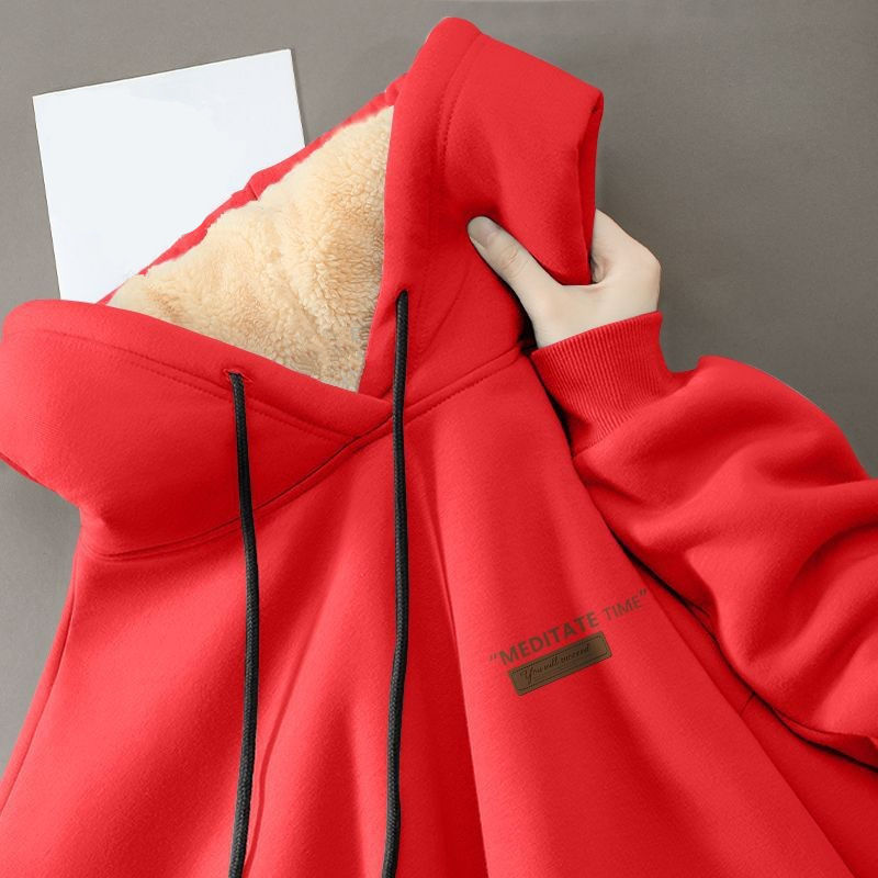 Студенческая толстовка мужская 2023 зимняя свободная повседневная дикая барашка пара с капюшоном толстый 12