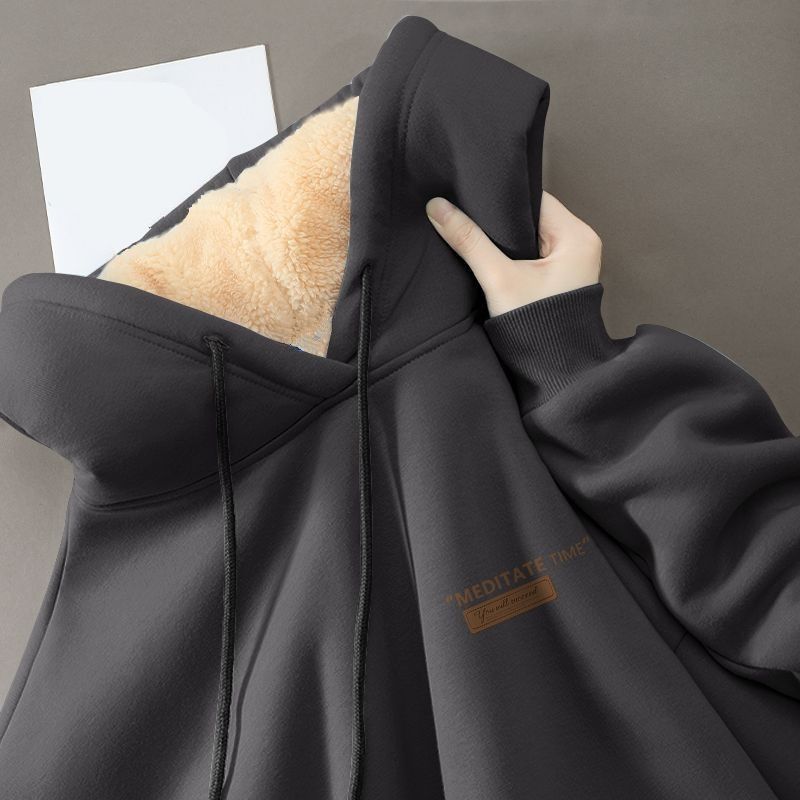 Главная страница > Студенческая толстовка мужская 2023 зимняя свободная повседневная дикая барашка пара с капюшоном толстый 12