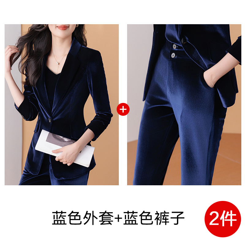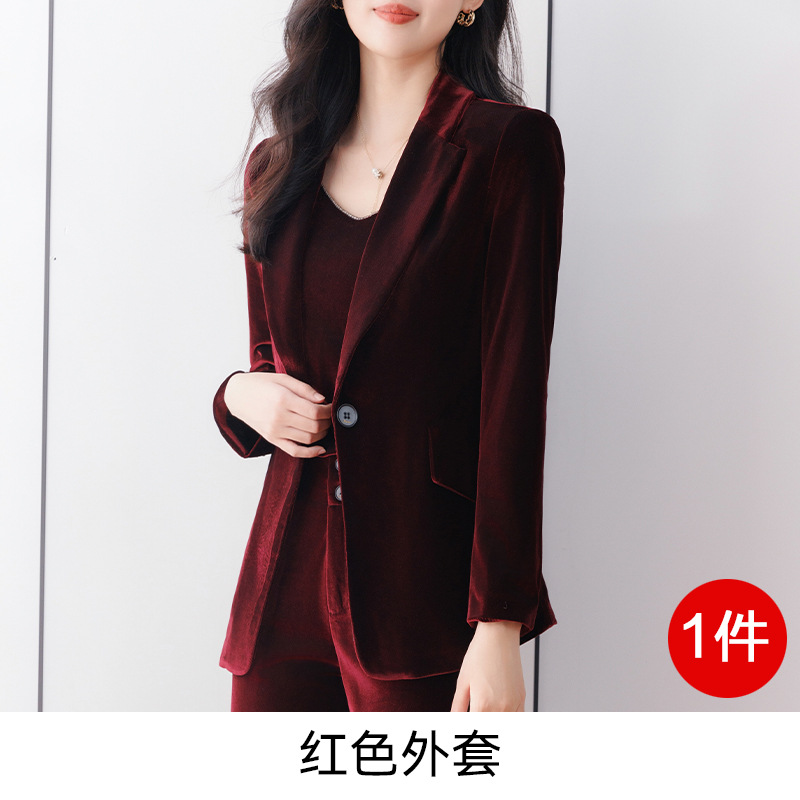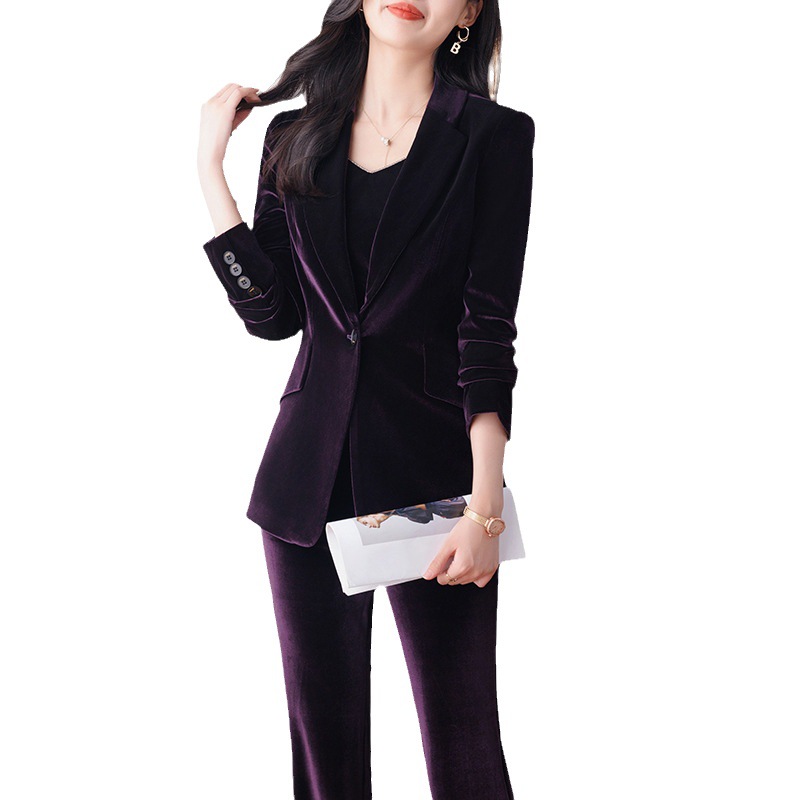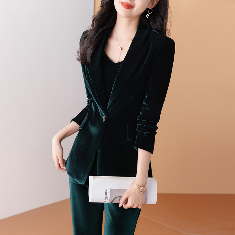Осенняя корейская версия маленького золотого бархатного костюма на новой женской моде