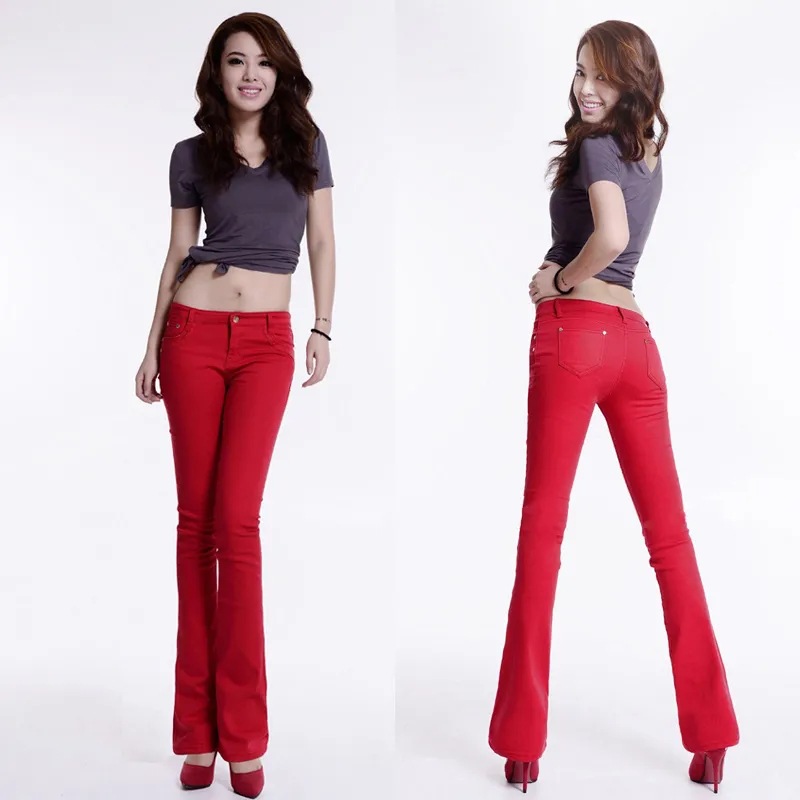 Главная страница > Новая Корейская версия джинсов для похудения карамельного цвета женские эластичные цветные микро расклешенные брюки оптом поколение волос
