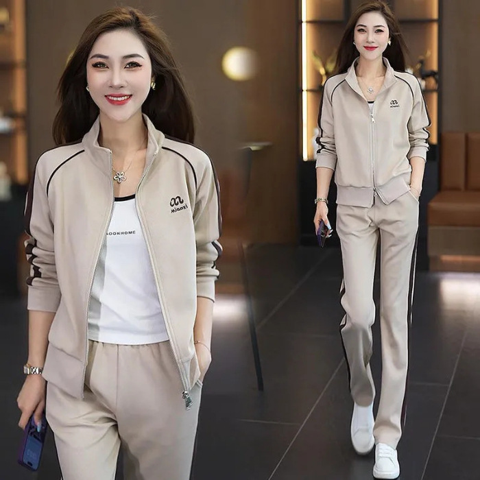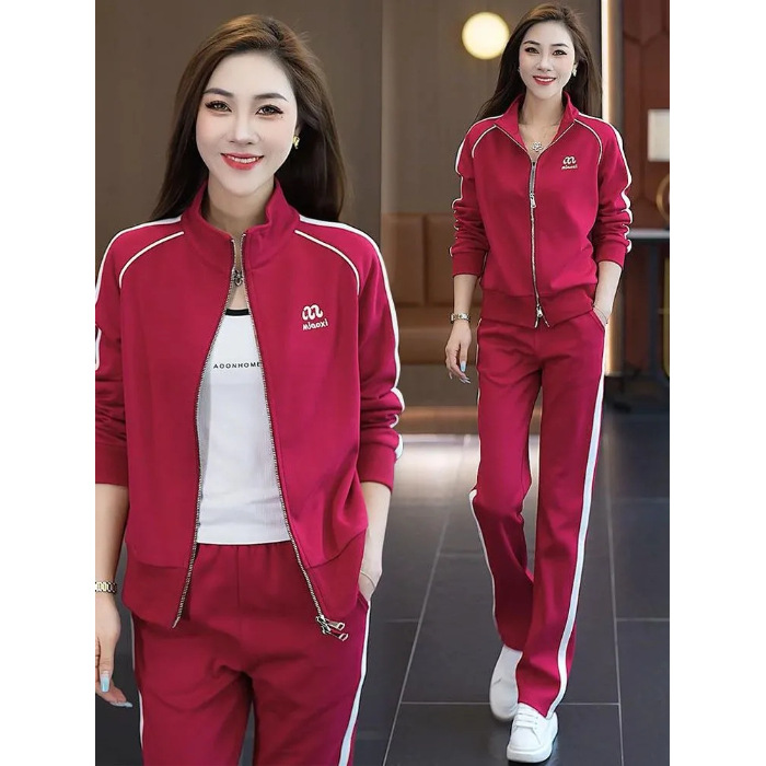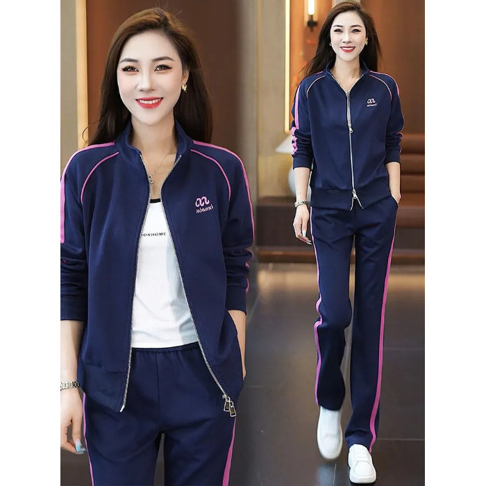 Спортивный костюм для женщин 2024 осень новая мода молодежный стройнящий толстовка широкие брюки комплект из двух предметов