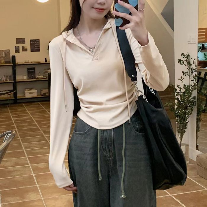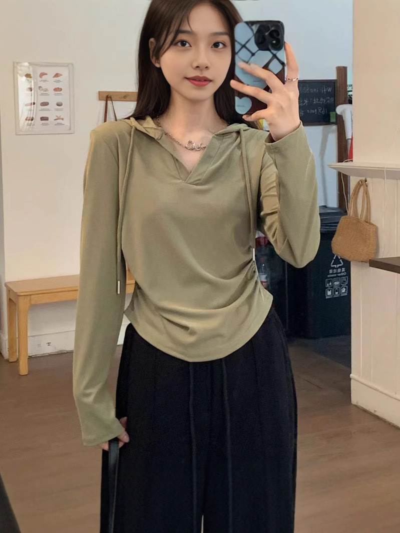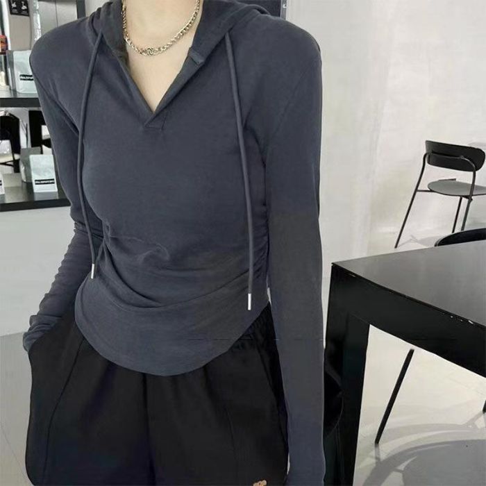 Главная страница > Толстовка женская, весенне-осенняя толстовка с V-образным вырезом, приталенная, обтягивающая талию, утягивающая, закрывающая, женская толстовка, внутренняя одежда, женская футболка, большие размеры.