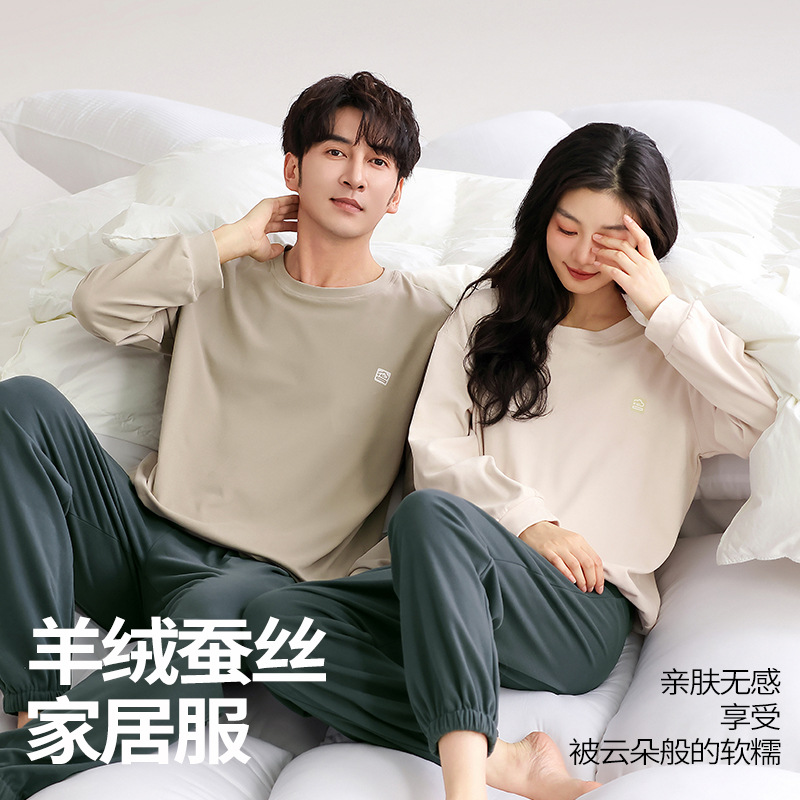 Главная страница > Кашемировый шелк: Новинка! Комплект женской домашней одежды из двух предметов для пар, осенне-зимний, с длинным рукавом, удобный, эластичный.