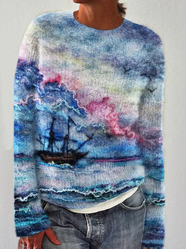 Главная страница > Пятно женский свитер с узором пуловер свитер повседневный свободный трикотажный топ с длинными рукавами