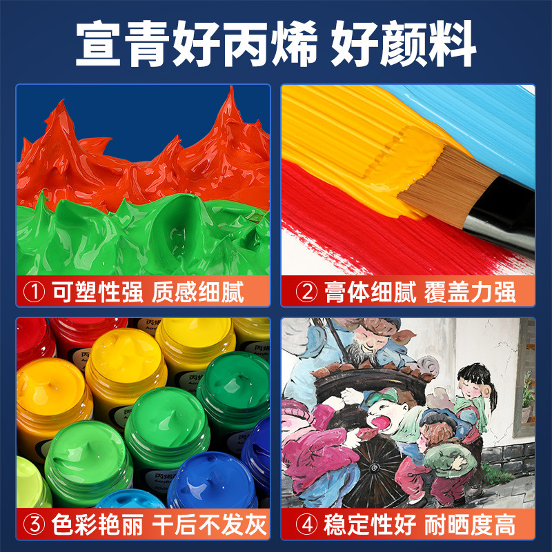 Главная страница > Акриловая краска Xuanqing в банках, водостойкая, для рисования на стенах, детский художественный набор, краска для гипса, акриловая, 48 цветов, водостойкая